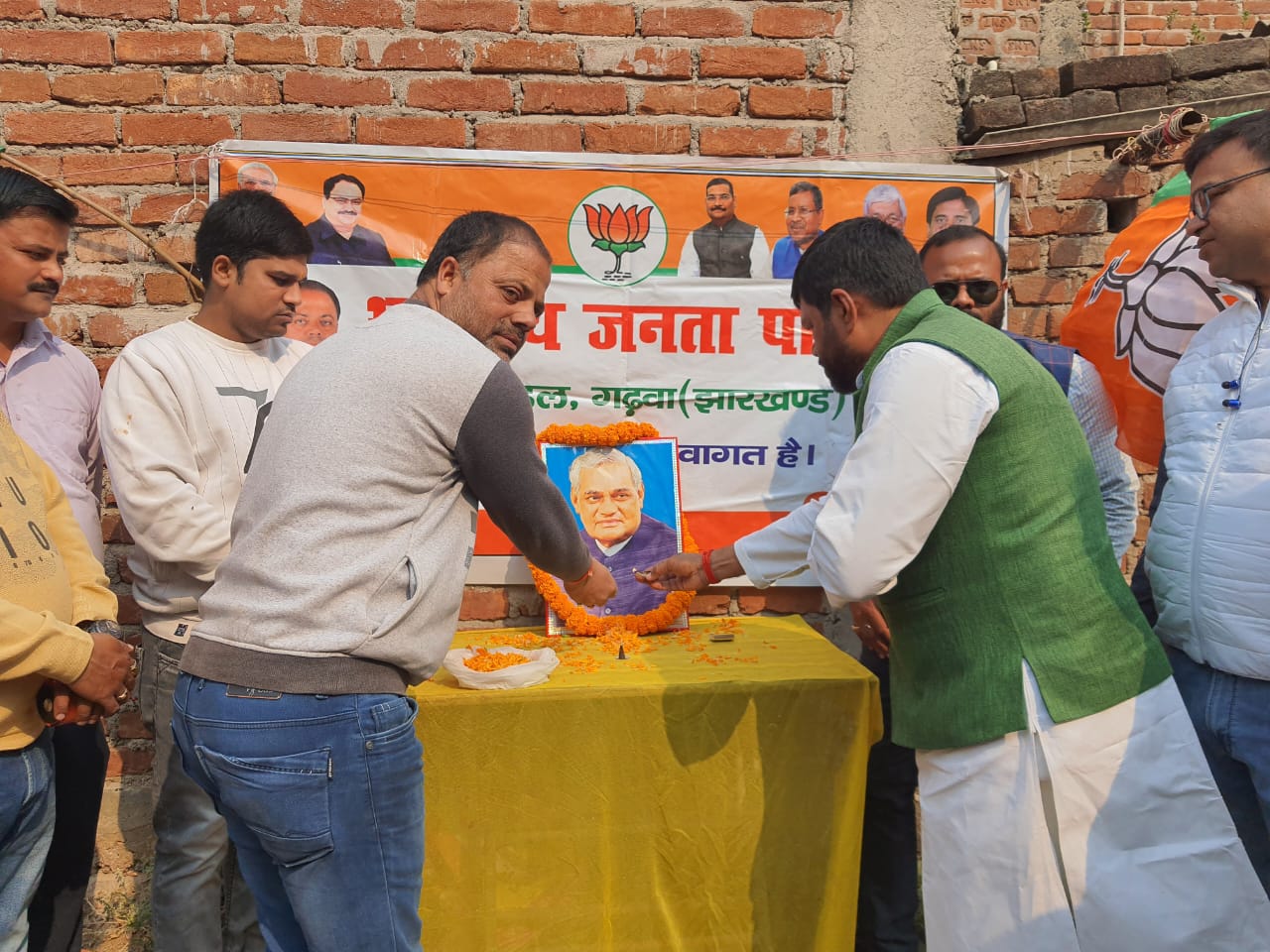 भाजपा गढ़वा नगर मंडल के द्वारा पूर्व प्रधानमंत्री अटल बिहारी बाजपेयी जी की जयंती सुशासन दिवस के रूप में शहर के बूथ संख्या 127/28 राकी मोहल्ला देवी धाम के पास मनाई गई। जयंती कार्यक्रम के पूर्व माननीय प्रधानमंत्री नरेंद्र मोदी जी की मन की बात को भी कार्यकर्ताओं ने सुना। सुशासन दिवस कार्यक्रम का शुभारंभ अटल जी की तस्वीर पर भाजपा प्रदेश कार्यसमिति सदस्य सह गढ़वा विधानसभा क्षेत्र के पूर्व प्रत्याशी सूरज गुप्ता ने फुल माला चढ़ाकर श्रद्धांजलि दी। मुख्य अतिथि सूरज गुप्ता ने कहा कि श्रद्धेय अटल बिहारी वाजपेयी जी का संघर्ष और विचार देश के लिए अनुकरणीय है क्योंकि उस जमाने में भी कांग्रेस के लोग वाजपेयी जी से सीखा करते थे।उन्होंने कहा कि तत्कालीन प्रधानमंत्री के रूप में बाजपेयी जी नहीं होते तो हम लोगों का झारखंड राज्य का सपना साकार नहीं होता। उन्होंने कहा कि आज राज्य में जेएमएम की सरकार चल रही है परंतु यही शिबू सोरेन जी के नेतृत्व में इनके सांसदों ने कांग्रेसी प्रधानमंत्री नरसिंहा राव से झारखंड आंदोलन को बेचने का काम किया था। उन्होंने कहा कि बाजपेयी जी आज हम लोगों के बीच नहीं हैं परन्तु उनकी सिंची हुई संगठन भाजपा दुनिया की सबसे बड़े राजनीतिक दल के रूप में खड़ी है। कार्यक्रम की अध्यक्षता कर रहे नगर मंडल अध्यक्ष उमेश कश्यप ने कहा कि वाजपेयी जी के विचार हम कार्यकर्ताओं की सबसे बड़ी पूंजी है क्योंकि सभी जाति धर्म के लोग उनके कार्य एवं विचार की भूरी भूरी प्रशंसा करते हैं।श्री कश्यप ने कहा कि मोदी जी की मन की बात से कार्यकर्ताओं में नई ऊर्जा का संचार होता है।मौके पर कार्यक्रम का संचालन महामंत्री यशवंत मिश्रा ने किया जबकि वरिष्ठ नेता सुरेंद्र विश्वकर्मा, सुप्रीत केसरी उर्फ बालाजी,ब्रजेंद्र कुमार पाठक,अपना शुभम,आशीष कश्यप,प्रवीण ठाकुर,अभिषेक कश्यप,कैलाश कश्यप, पृथ्वीनाथ, मनोज गुप्ता, रवि प्रसाद,दामोदर प्रसाद गुप्ता,हरि ओम,कुन्नू माली, सूर्यदेव माली, संतोष कश्यप,समीर खान सहित बड़ी संख्या में कार्यकर्ता उपस्थित थे ।