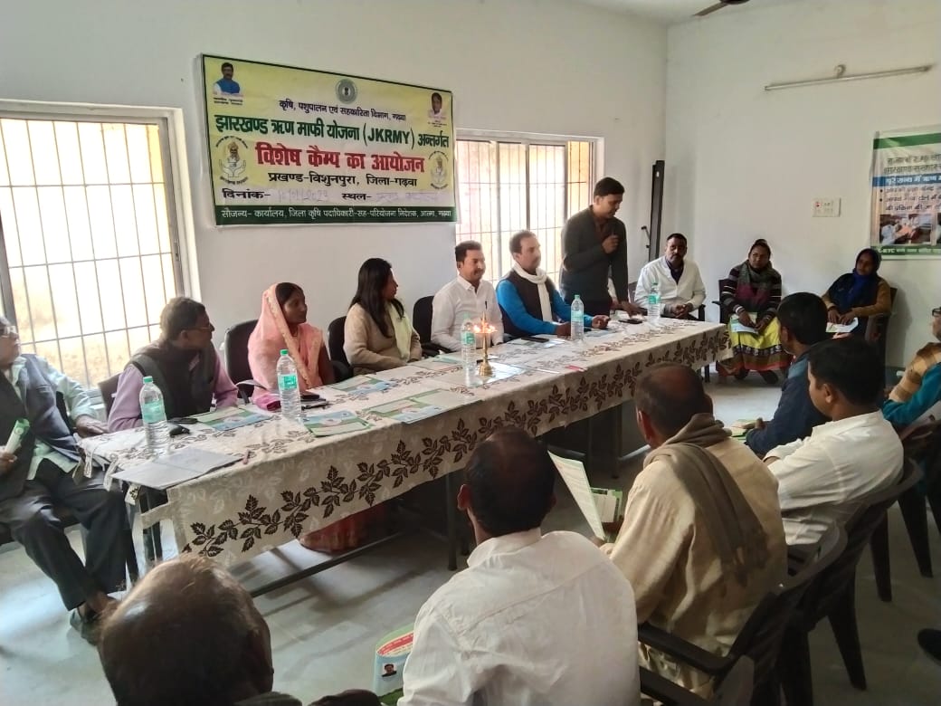 बिशुनपुरा ,प्रखंड कार्यालय के सभागार में झारखंड ऋण माफी योजना के अंतर्गत विशेष कैंप का शुभारंभ अंचलाधिकारी सुश्री निधि रजवार ने दीप प्रज्ज्वलित कर किया, झारखंड राज्य ग्रामीण बैंक के शाखा प्रबंधक अंचल दुबे के द्वारा कैम्प के माध्यम से किसानो के बीच ऋण संबंधित माफी का केवाईसी कराने की जानकारी दी गई।