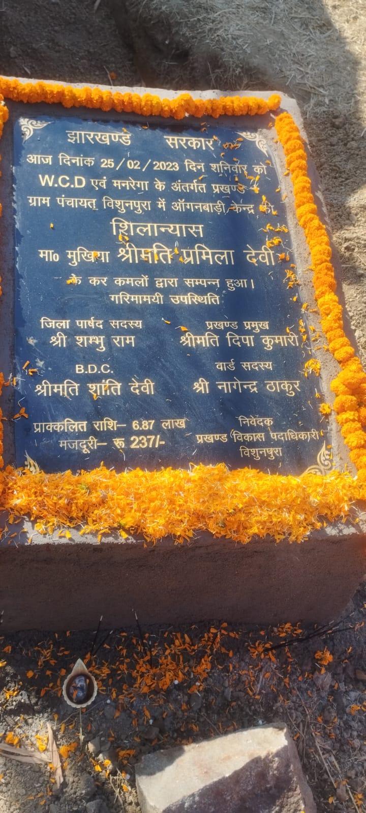मुखिया प्रमिला देवी ने बताया कि आंगनबाड़ी केंद्र का निर्माण डब्लू. सी. डी. एवं मनरेगा कि राशि से की जा रही है। जिसकी लागत छ:लाख सतासी हजार रुपए है। मुखिया प्रमिला देवी ने कहा कि विकास के बिना गरीबी दूर नहीं की जा सकती।उन्होंने कहा कि अपनी पूरी ऊर्जा और क्षमता के साथ पंचायत के प्रति दृढ़ संकल्पित रहूंगी और गरीबों के उत्थान तथा जीवन स्तर में सुधार के प्रयास निरंतर करती रहूंगी। मौके पर ब्लाक प्रमुख दीपा कुमारी, बिशुनपुरा पंचायत समिति सदस्य शांति देवी, वार्ड सदस्य नागेंद्र ठाकुर, पंचायत सेवक जगदीश राम, समाजसेवी चंदन कुमार मेहता, स्वयंसेवक भुनेश्वर राम, विशुनपुरा मुखिया प्रतिनिधि डॉ प्रवीण कुमार यादव, अनिल कुमार पाल, उपेंद्र कुमार चंद्रवंशी सहित सैकड़ों ग्रामीण जनता उपस्थित थे।