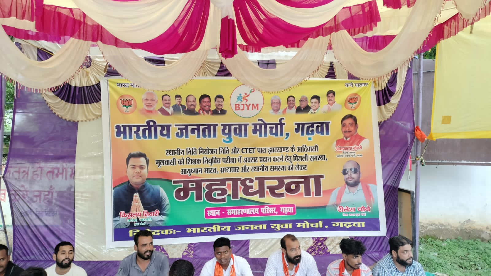 भाजयुमो जिलाध्यक्ष रितेश चौबे की अध्यक्षता में जिला मुख्यालय पर महाधरना कार्यक्रम का आयोजन किया गया। कार्यक्रम के दौरान विषय प्रवेश कराते हैं भाजयुमो जिलाध्यक्ष रितेश चौबे ने कहा कि झामुमो सरकार ने युवाओं को रोजगार देने के नाम पर ठगने का काम किया है अबतक नियोजन नीति स्थानीय नीति बनाने में हेमंत सरकार फेल साबित हो चुकी है।