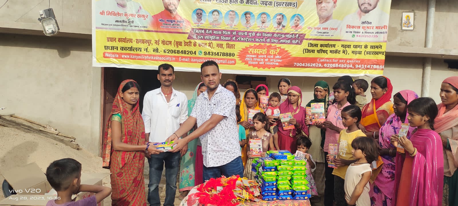 गढ़वा: कन्या विवाह और विकास सोसाइटी के द्वारा रक्षाबंधन के अवसर पर सोमवार को सदर प्रखंड के तिलादाग गांव में गरीब व जरूरतमंद बहनों के बीच राखी व मिठाई का वितरण किया गया। इसकी जानकारी देते हुए संस्था के सचिव विकास कुमार माली ने बताया कि संस्था के द्वारा इसी को देखते हुए रक्षाबंधन के अवसर पर घर घर में जाकर राखी व मिठाई दिया जा रहा है। ताकि बहने अपने भाइयों की कलाई पर राखी बांधकर मिठाई खिला सके। उन्होंने कहा कि आसपास के गांव में जाकर संस्था के द्वारा राखी व मिठाई का वितरण किया जाएगा। उन्होंने कहा कि संस्था का मुख्य उद्देश्य है कि बाल विवाह, दहेज प्रथा, भ्रूण हत्या को रोकना है। उन्होंने कहा कि इसी को देखते हुए 6 दिसंबर को 101 कन्याओं का सामूहिक विवाह कराया जाएगा। इसी को लेकर संस्था के द्वारा गांव-गांव में जरूरतमंद बहनों का रजिस्ट्रेशन कराया जा रहा है। उन्होंने कहा कि सामूहिक विवाह में कन्याओं को विदाई सामग्री देकर विदाई कराई जाएगी। इधर तिलदाग गांव में राखी व मिठाई वितरण के दौरान बहनों ने कहा कि इससे पहले किसी संस्था के द्वारा या किसी नेता के द्वारा इस तरह का पहल नहीं किया गया था। कन्या विवाह एंड विकास सोसाइटी के द्वारा यह पहली बार इस तरह का आयोजन कर रक्षाबंधन से पूर्व हम लोगों के बीच राखी व मिठाई का वितरण किया गया है। यह बहुत ही स्वभाग व खुशी की बात है। इस अवसर पर संस्था के जिला प्रबंधक अयूब खान, सर्वेयर दीनानाथ साव, आलम गिर, रंजीत कुमार सहित अन्य लोग उपस्थित थे।