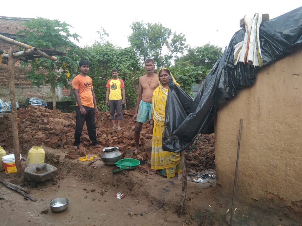 बिशुनपुरा(गढ़वा):- बिशुनपुरा पंचायत के रहने वाले मुंद्रिका राम का कच्ची खपड़ैल का मकान लगातार बारिश के कारण देर रात ध्वस्त हो गई। वहीं घटना के समय परिवार वाले उस घर में सोए नहीं थे जिससे अनहोनी होने से बच गई। वहीं घर क्षतिग्रस्त हो जाने से घर में रखे खाने के अनाज जैसे चावल, दाल, आटा सहित बर्तन, कुर्सी, बाल्टी, तसला आदि क्षतिग्रस्त हो गया। वहीं घर के मालिक मुंद्रिका राम ने बताया की हमलोग का घर गिर जाने से हमलोग का रहने का आश्रय छिन्न भिन्न हो गया। वहीं लगातार बारिश के कारण कीचड़ में रहना दुर्लभ हो गया है।