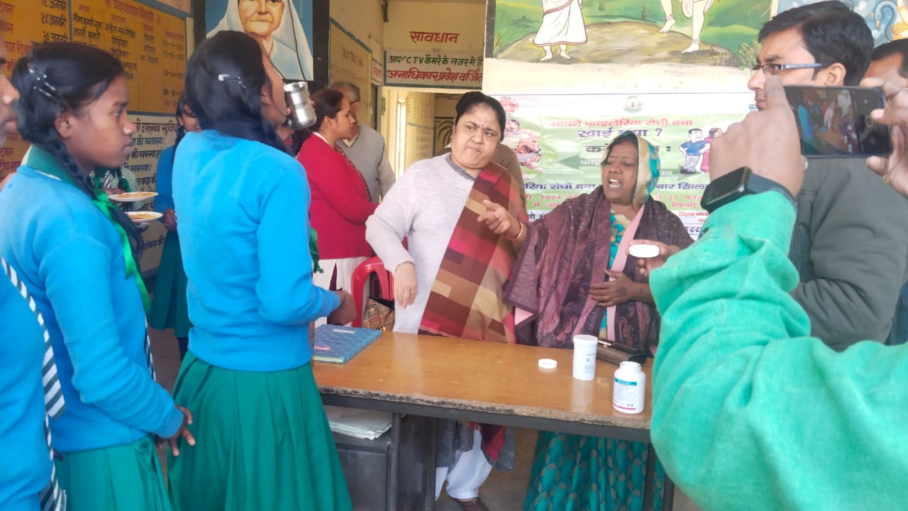 रमना। प्रदेश सरकार के निर्देश के आलोक में प्रखंड के सभी सरकारी विद्यालयों के साथ साथ बस स्टैंड,रेलवे स्टेशन पर बच्चों को फाईलेरिया और कृमिनाशक दवा खिलाया गया। यह अभियान दस फरवरी से पुरे प्रदेश में आरंभ किया गया है।शनिवार को रमना मुखिया दुलारी देवी और अनुमंडलीय अस्पताल की अधीक्षक सुचित्रा कुमारी ने रमना के कस्तुरबा गांधी आवासीय विद्यालय में छात्राओं को दवा खिलाकर अभियान आरंभ किया।मौके पर दुलारी देवी ने कहा कि सरकार अभियान के माध्यम से लोगो को सामुहीक दवा खिलाकर फाईलेरिया जैसी गंभीर बिमारी के समाप्ती के प्रति गंभीर है।लोगो को भी जागरुगता दिखाने की आवश्कता है।इस अवसर पर विद्यालय के वार्डेन,शिक्षिका के अलावे छात्राए उपस्थित थी।