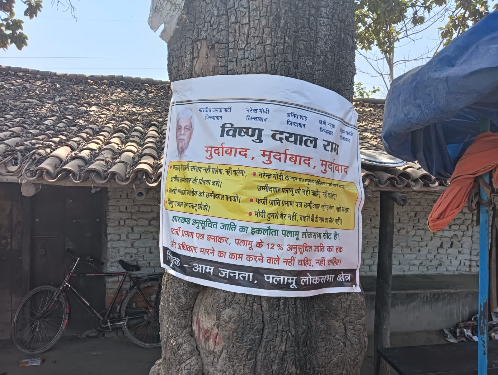 गढ़वा। लोकसभा चुनाव को ले कर अभी तो बीजेपी द्वारा देश के सभी संसदीय सीटों पर प्रत्याशियों की घोषणा भी नहीं की गई है,उधर पार्टी द्वारा देश में चार सौ पार और झारखंड के सभी चौदह सीटों को अपनी झोली में डाल लेने का दावा किया जा रहा है,पर इधर विरोध भी शुरू हो गया है,कहां किसका विरोध हो रहा है अब बिना बात को आगे बढ़ाए सीधे रूप में आपको बताएं की झारखंड के चौदह सीटों पर एक पलामू भी आता है जहां लगातार दो बार से सांसद विष्णु दयाल राम को एक बार फ़िर से पार्टी द्वारा अपना उम्मीदवार घोषित किया गया है,उधर जहां एक ओर पलामू के बाद गढ़वा में पार्टी नेताओं और कार्यकर्ताओं द्वारा उनका अभिनंदन किया गया,तो वहीं दूसरी ओर इसी गढ़वा में उनके विरोध में पोस्टर भी साटा गया है,पोस्टर में नरेंद्र मोदी,अमित शाह,जेपी नड्डा और बाबूलाल मरांडी जिंदाबाद भले लिखा गया है,लेकिन ठीक उसके नीचे विष्णु दयाल राम मुर्दाबाद लिखा गया है,जब उसके नीचे पढ़िएगा तो पलामू में बाहरी सांसद नहीं चलेगा,क्षेत्रीय उम्मीदवार की घोषणा करें,बाहरी भगाओ स्थानीय को उम्मीदवार बनाओ,विष्णु दयाल राम पलामू छोड़ो,नरेंद्र मोदी के नाम पर चुनाव जीतकर सो जाने वाला उम्मीदवार नहीं चाहिए,फर्जी जाति प्रमाण पत्र उम्मीदवार नहीं चलेगा,साथ ही जो बड़ी बात लिखी हुई है वो यह है की मोदी तुमसे बैर नहीं बाहरी बीडी राम का खैर नहीं,इन नारों के साथ बजाप्ते बीडी राम की तस्वीर के साथ पोस्टर शहर में कई जगह साटा गया है,तभी कहना पड़ रहा है की राम के इस देश में आख़िर विष्णु का विरोध क्यों..?