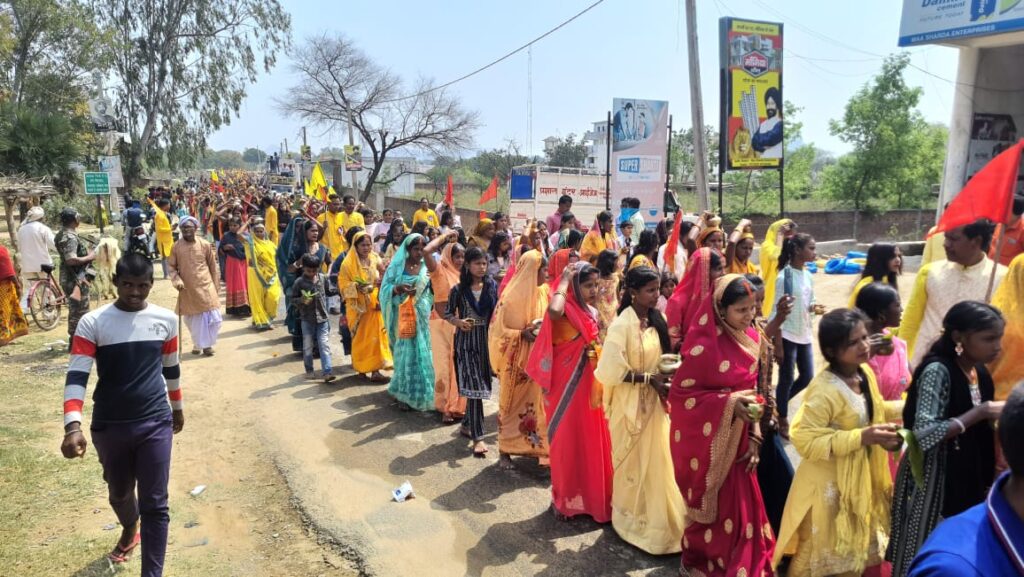 वहीं शोभायात्रा में विशुनपुरा थाना प्रभारी राहुल सिंह पुलिस बल के साथ मुस्तैद रहे।