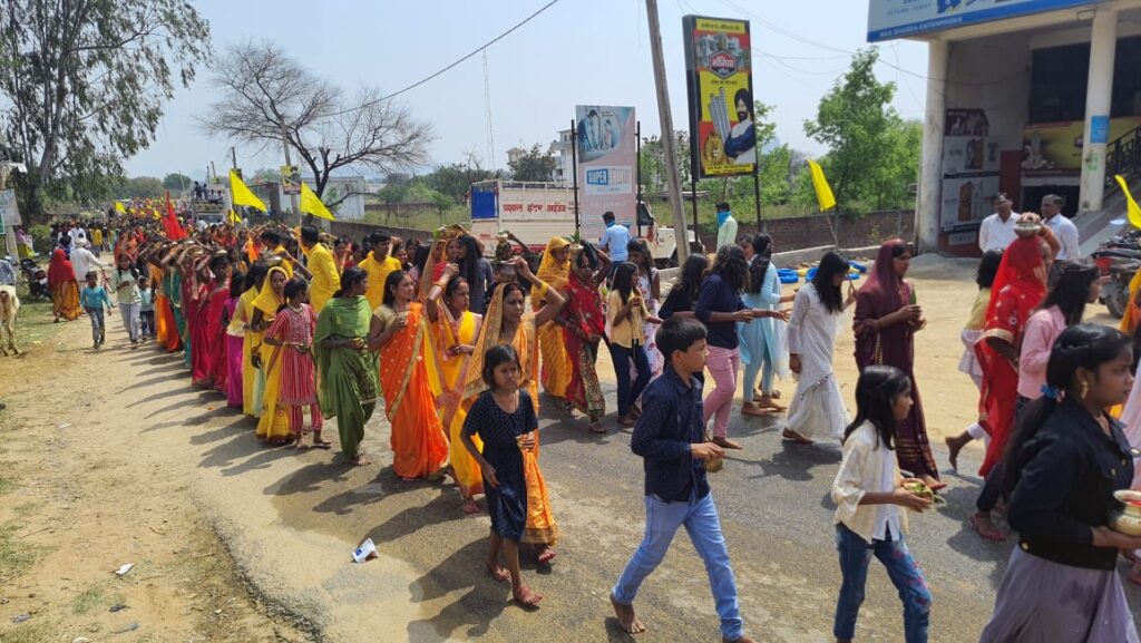 कलश यात्रा सह शोभा यात्रा में आस पास के विभिन्न गांव से आये हजारो श्रद्धालु शामिल हुए. ढोल नगाड़े के साथ शोभायात्रा निकाली गयी.