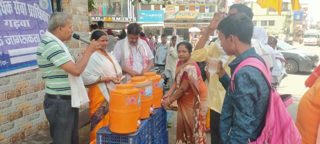 माननीय उच्च न्यायालय झालसा रांची के निर्देश पर प्रधान जिला एवं सत्र न्यायाधीश सह अध्यक्ष /श्री राजेश शरण सिंह जिला विधिक सेवा प्राधिकार गढ़वा, एवं सचिव,रवि चौधरी के आदेशानुसार आज दिनांक 07/6/ 2024 को , रंका मोड हनुमान मंदिर के सामने इंस्टॉल लगाकर राहगीरों को पी एल वी मुरली श्याम तिवारी एवं कृष्णानंद दुबे के द्वारा हीट वेव को देखते हुए बताया गया की ओआरएस का घोल पीते रहे तथा 10:00 बजे दिन के बाद बाहर नहीं निकले, पेट खाली नहीं रखें, कपड़े से शरीर को ढक के रखें,किसी भी तरह का अगर दिक्कत आ रही है तो तुरंत डॉक्टर से मिले ,जिन लोगो को ब्लॉक अंचल , में नामांतरण हो या सीमांकन हो,तथा थाना एवम जिला से कोई कार्य लंबित है, वे अपना आवेदन चलंत लोक अदालत या सचिव जिला विधिक सेवा प्राधिकार गढ़वा को दे आवेदन पर त्वरित कार्रवाई की जाएगी साथ ही निः शुल्क कानूनी सहायता दिलाने हेतु हर संभव मदद किया जाएगा इस अवसर पर पी एल वी कल्पना देवी संगीता सिन्हा सहित लगभग 450 की संख्या में राहगीरों को पानी पिलाया गया