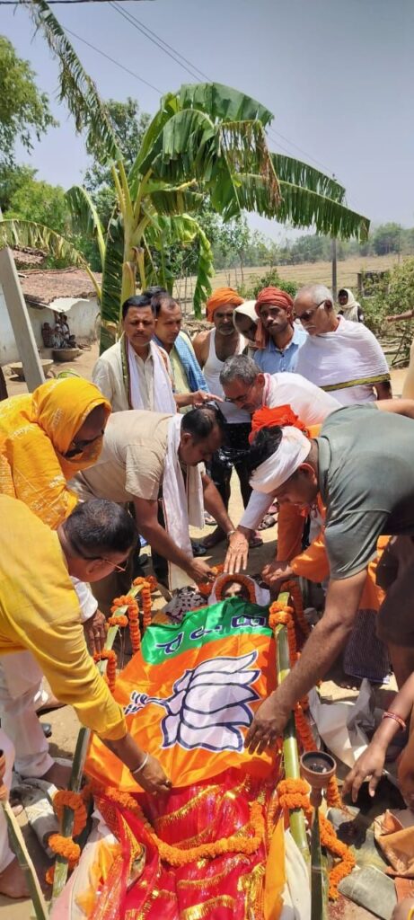इस दौरान श्री तिवारी के पार्थिव शरीर पर भाजपा का झंडा ओढ़ा कर उन्हें सम्मान दिया गया।