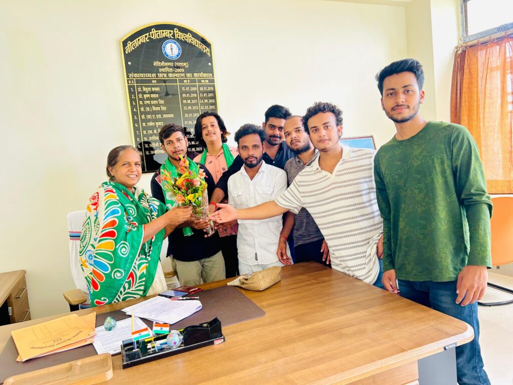 झामुमो छात्र मोर्चा के एनपीयू अध्यक्ष कौशल सिंह के नेतृत्व में छात्र मोर्चा के एक प्रतिनिधिमंडल ने डीएसडब्ल्यू महोदया को गुलदस्ता देकर धन्यवाद किया।