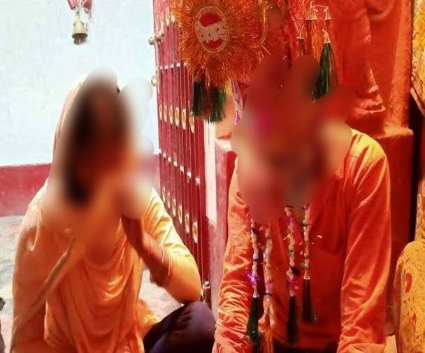 रात के अंधेरे में मिलने आए प्रेमी जोड़ों को ग्रामीणों ने करा दी शादी। 18 साल के लड़के से 21 साल की लड़की की मांग में भरवा दी सिन्दूर।