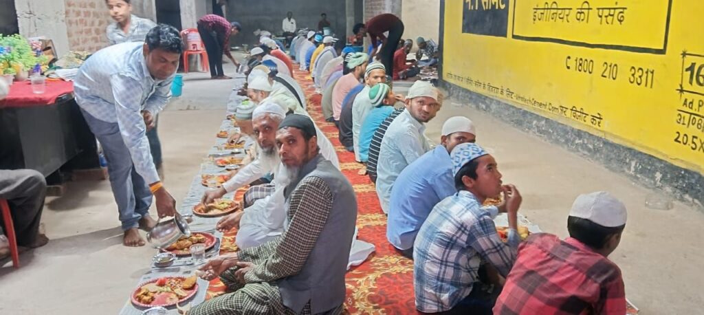 मेराल पूर्वी पंचायत के मुडल टोला निवासी समाजसेवी धनंजय चौधरी ने रोजेदारों के लिए दावत_ ए_ इफ्तार पार्टी का आयोजन किया। इफ्तार पार्टी का आयोजन मेराल पूर्वी पंचायत के पूर्व बीडीसी वहीदा बीवी पति लतीफ अंसारी के घर पर किया गया। इस संबंध में समाजसेवी धनंजय चौधरी ने बताया कि रमजान के पाक महीने में रोजेदारों के लिए इफ्तार पार्टी देना शबाब का काम है। उन्होंने कहा कि इस तरह का कार्यक्रम का आयोजन करना आपसी भाईचारा का पैगाम जाता है। रोजे के समय इफ्तार पार्टी का आयोजन करना एक विशेष महत्व रखता है। उन्होंने कहा कि मुस्लिम समाज के लोग पूरे 1 महीने तक रमजान के पवित्र महीना में रोजा रखते हैं ताकि अपने क्षेत्र एवं भारत में अमन चैन की दुआ करते हैं। इफ्तार पार्टी के मौके पर पूर्व बीडीसी पति लतीफ अंसारी ने कहा कि इस तरह के इफ्तार पार्टी का आयोजन गंगा जमुना तहजीब का मिसाल है। इस अवसर पर रियासत अंसारी, सोनू अंसारी रुस्तम अंसारी, यासिन अंसारी, सहित काफी संख्या में रोजेदार शामिल थे ।