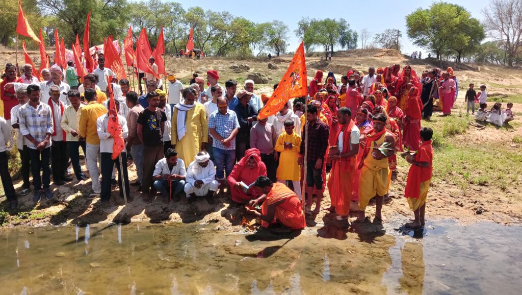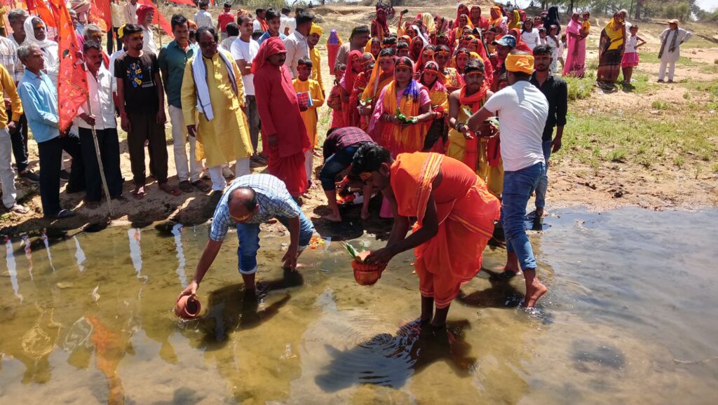 पलामू: जिले के पाण्डु प्रखंड अंतर्गत ग्राम पंचायत महुगांवा में हनुमान मंदिर के परागण में रामनवमी को लेकर कलश यात्रा निकाली गई जिसमें सैकड़ो महिला पुरुष कलश उठाकर जय श्री राम की जय घोष के साथ झांसी और बाकी नदी के संगम पहुंचे। जहां पर पंडित गंगाधर पाठक ने मनतोच्चारण के साथ कलश में जल भरवाए एवं सभी भक्त जल उठाकर वापस हनुमान मंदिर पहुंचे। वही कलश स्थापना दिन रविवार को किया जाएगा एवं रात्रि में राम कथा कार्यक्रम किया जाएगा। वह इस कार्यक्रम में मुख्य अतिथि के रूप में विधायक पुत्र रौशन कुमार सिंह, विधायक प्रतिनिधि देवेंद्र सिंह उर्फ मुन्ना सिंह, पांडू जिला परिषद सदस्य मीना देवी, उप मुखिया शंभू सिंह, अरविंद सिंह, विजय विश्वकर्मा,उदित सिंह,सोनू सोनी, मनोज सिंह, मिथिलेश चंद्रवंशी,अभिषेक विश्वकर्मा,संतोष पासवान इत्यादि मौके पर उपस्थित रहे