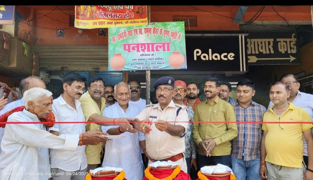 स्वर्गीय रामदेनी साह स्वं यमुना कुंवर के पुण्यस्मृति में लगातार 19 वर्षों से संचालित पनशाला का शुभारंभ अनुमंडल पुलिस पदाधिकारी सतेंद्र नारायण सिंह के द्वारा फीता काट कर उद्घाटन किया गया। इस मौक़े डा. ओम प्रकाश, हृदयानंद कमलापुरी, संतोष कमलापुरी, निक्की जायसवाल, शंभु सौदागर, डा. धर्मचंद अग्रवाल, भोलू कुमार, मंदीप प्रसाद महमूद आलम, उमेश कुमार, छोटू कुमार सहित चेंबर के पदाधिकारी गण एवं गणमान्य लोग उपस्थित थे, पनशाला के व्यस्थापक रामप्रसाद कमलापुरी ने बताया कि पूरे गर्मी भर राहगीरों के लिए शीतल जल की व्यवस्था की जाती है।