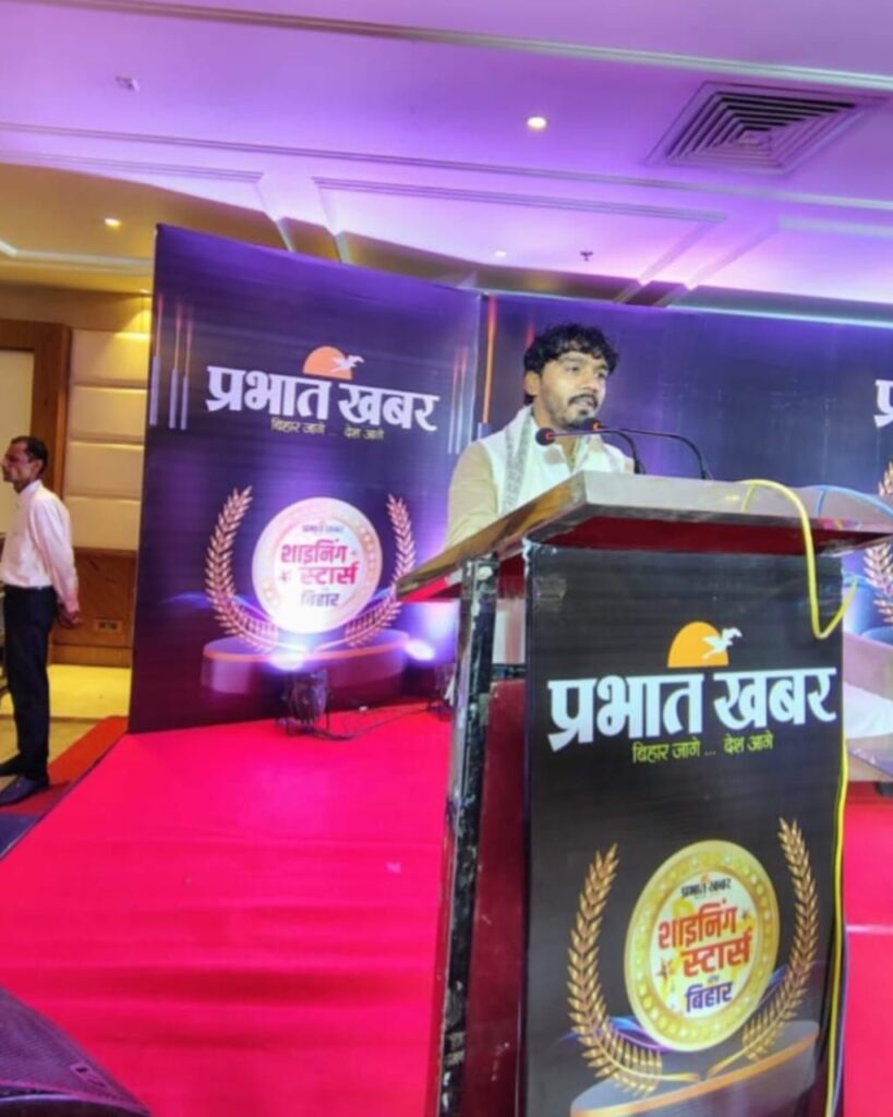 प्रभात खबर की ओर से समाज सेवा में विशिष्ट योगदान के लिए विकास माली को बिहार के उप मुख्यमंत्री सम्राट चौधरी द्वारा *शाइनिंग स्टार ऑफ बिहार* का पुरस्कार देकर सम्मानित किया गया।
