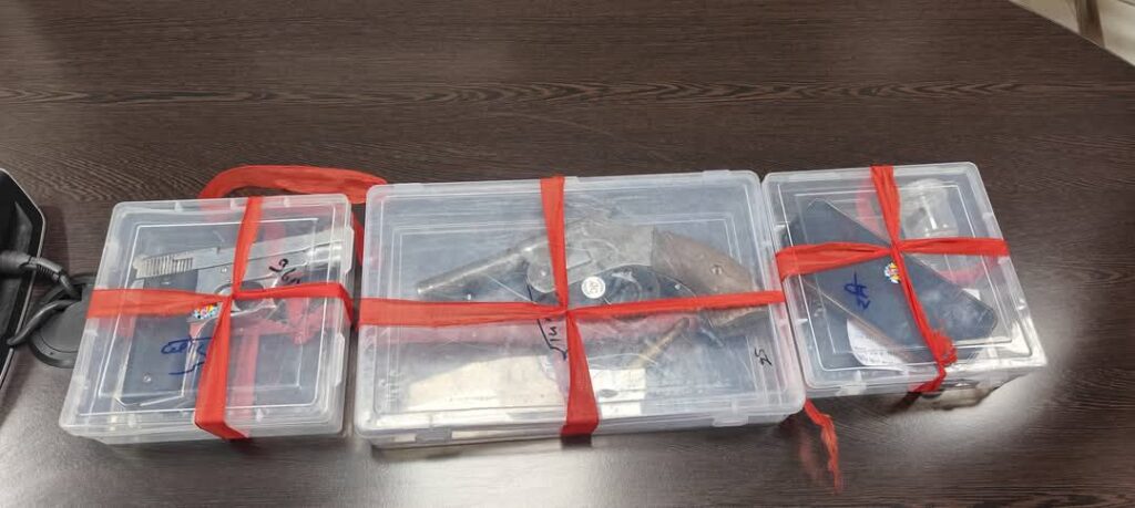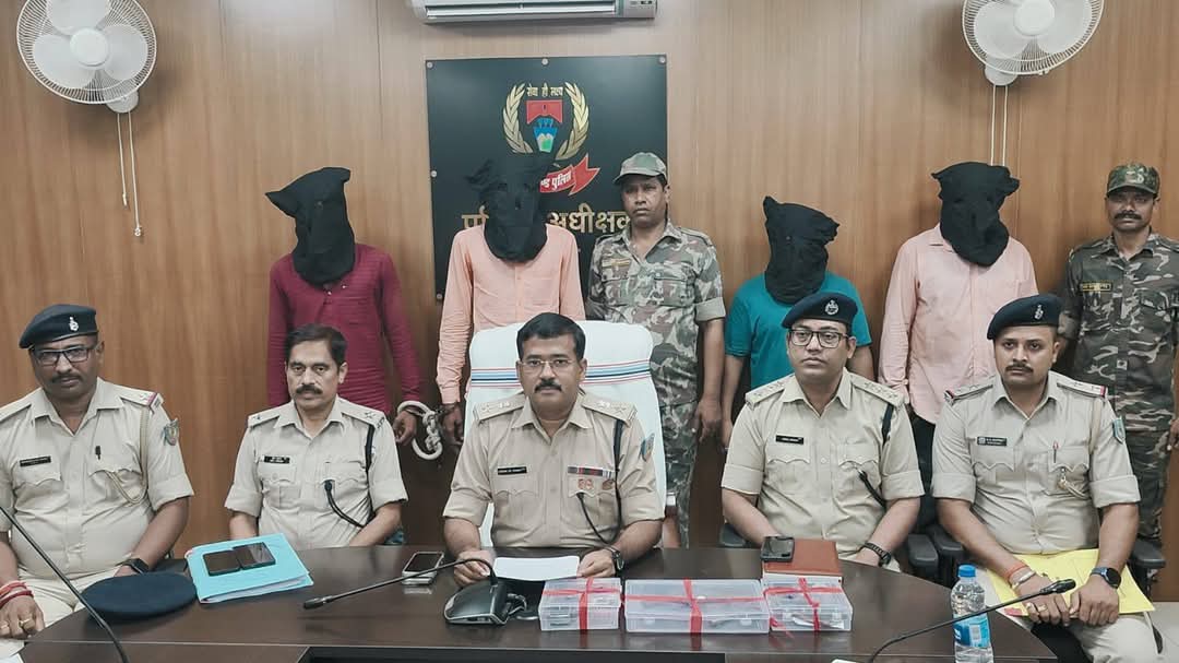 अरमान खान की रिपोर्ट//गढ़वा:-डीएसपी गढ़वा के निर्देश पर उक्त टीम गठित कर छापेमारी कार्रवाई की गई। जहां कांड में संलिप्त अभियुक्तों की गिरफ्तारी की गई है। आपको बताते चले की, दिनांक 15.05.2025 को रात्रि समय करीब 23:58 बजे गढ़वा थाना अंतर्गत स्थित विराट होटल के मालिक सोनू कुमार उर्फ सन्नी के ऊपर कुछ अज्ञात अपराधियों के द्वारा गोली चलाने की घटना कारित की गई थी। उक्त घटना के उद्भेदन हेतु पुलिस अधीक्षक गढ़वा के निर्देश पर अनुमंडल पुलिस पदाधिकारी गढ़वा के नेतृत्व में गठित छापामारी टीम के द्वारा घटना में संलिप्त 04 अपराधियों को गिरफ्तार कर न्यायिक में भेजा गया। साथ ही अपराधियों के पास से उनकी निशानदेही पर 01 देशी पिस्टल, 01 लोडेड देशी कट्टा, 01 जिंदा गोली एवं घटना में प्रयुक्त 02 मोटरसाइकिल को बरामद किया गया। इस सम्बन्ध में गढ़वा थाना कांड संख्या 230/25 एवं 240/25 दर्ज कर अग्रतर कानूनी कार्रवाई की जा रही है।