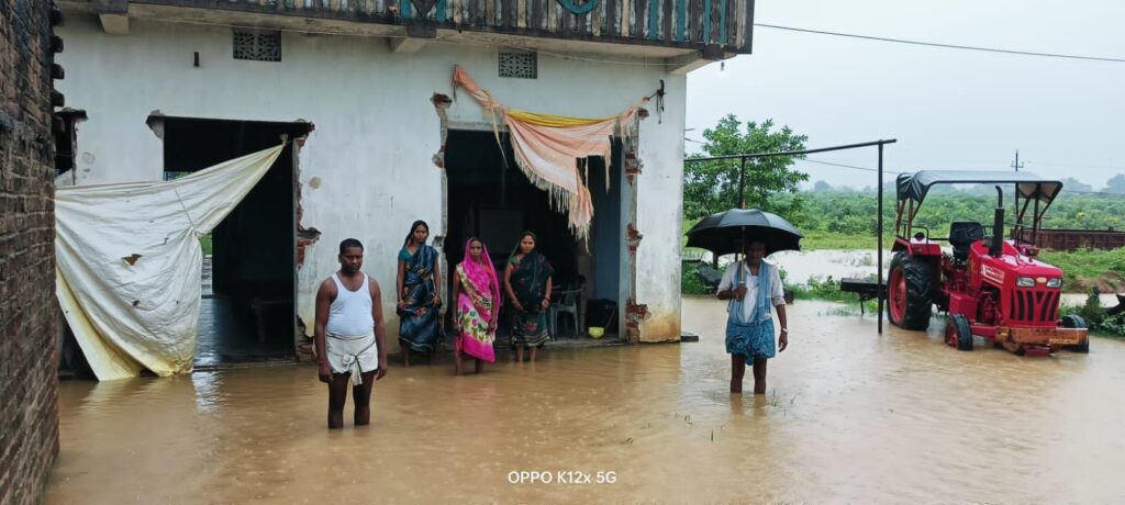 रमना । मंगलवार की रात हुई झमाझम बारिश के कारण मड़वनिया के जुड़वनिया मोड़ स्थित कई घरों में अचानक पानी भर जाने से अफरातफरी का माहौल उत्पन्न हो गया। घरों में वर्षा का पानी घुस जाने के कारण कई लोगो ने पूरी रात जग कर बिताई। पीड़ित परिवारों ने बताया कि जुड़वनिया मोड़ के पास एक पुलिया हुआ करता था,जिसे होकर बारिश पानी का गुजरता था,परंतु एनएच-75 सड़क चौड़ीकरण कार्य के दौरान उक्त पुलिया को भर दिया गया। जिस कारण जल निकासी नहीं होने से वर्षा का पानी सीधे आस पास के आधा दर्जन घरों में घुस जा रहा है। पीड़ित गृहस्वामियों ने बीडीओ सह सीओ को आवेदन देकर तत्काल जल निकासी की समुचित व्यवस्था कराने की मांग की है। मांग करने वालो में रामजी राम,गुंजेश राम,महानंद मेहता,राधेश्याम ठाकुर ,राकेश प्रजापति,बसंत प्रजापति,राजेश प्रजापति, शोभन प्रजापति आदि का नाम शामिल है।इधर बुधवार को भी पूरे दिन रुक- रूक कर बारिश होने के कारण जन जीवन प्रभावित रहा। हाट बाजार ,सरकारी कार्यालयों एवम दुकानों में लोगो की काफी कम उपस्थिति देखी गई।वही वारिश के कारण लोग घरो में दुबके रहे। जिससे सड़को पर सन्नाटा पसरा रहा।