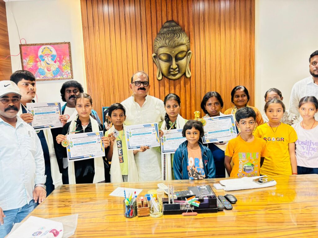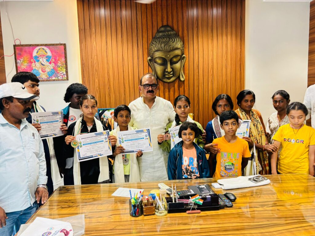 पूर्व मंत्री ने मेडल विजेता खिलाड़ियों को किया सम्मानित