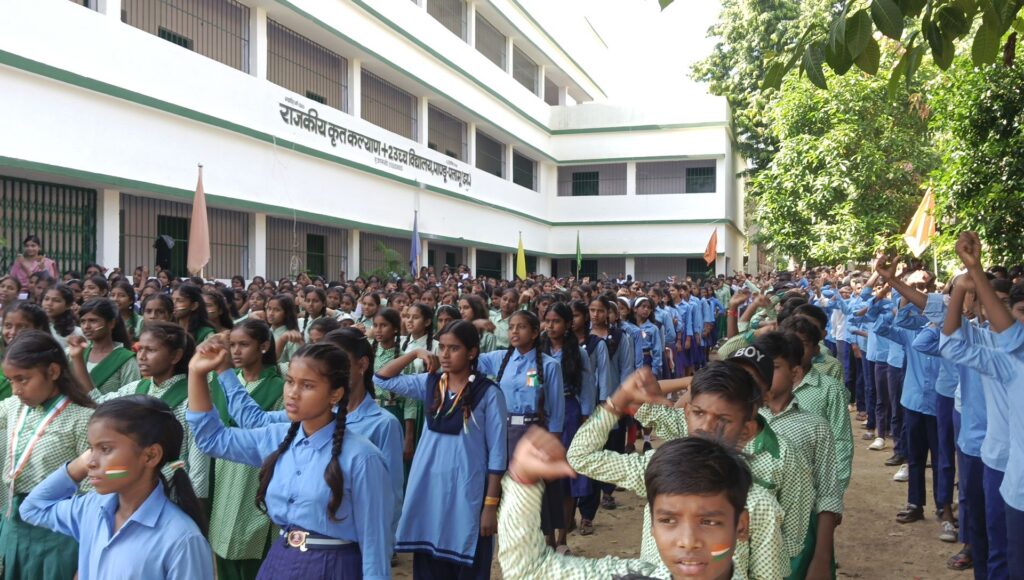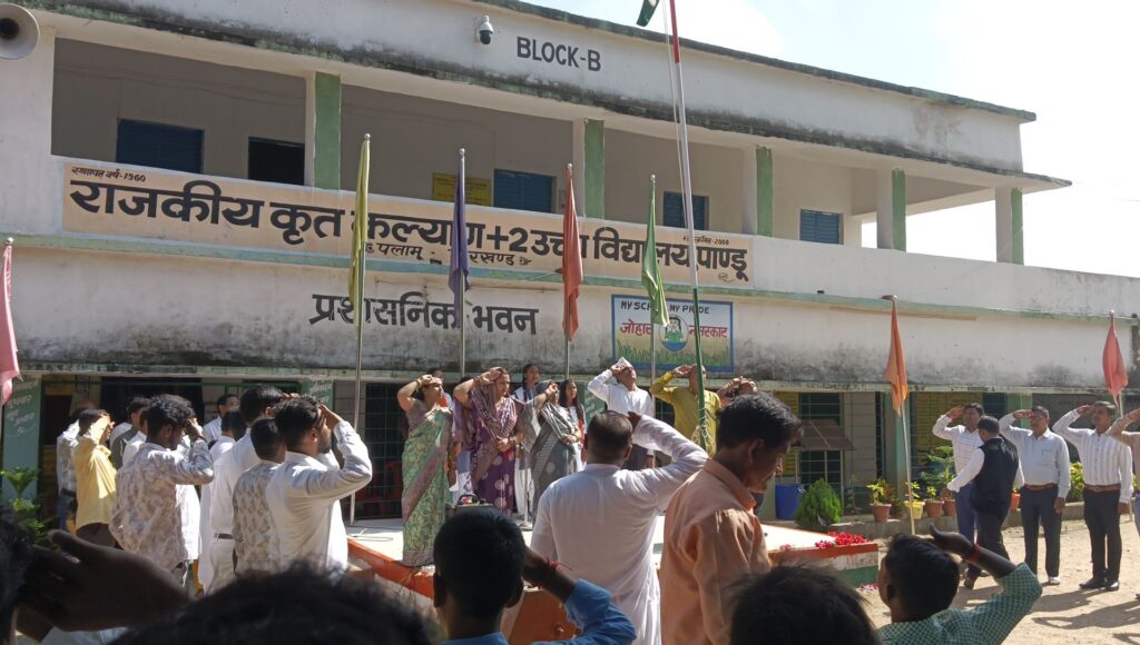 पांडू – स्वतंत्रता दिवस के शुभ अवसर पर राजकीयकृत कल्याण +2 उच्च विद्यालय, पांडू का वातावरण देशभक्ति की भावना से ओत-प्रोत रहा। सुबह से ही विद्यालय परिसर तिरंगे के रंगों से सजा हुआ था। छात्र-छात्राएं पारंपरिक वेशभूषा और देशभक्ति परिधानों में उत्साहपूर्वक विद्यालय पहुँचे। कार्यक्रम का शुभारंभ प्राचार्य देवेश कुमार पाल द्वारा ध्वजारोहण से हुआ, जिसमें छात्र-छात्राओं, शिक्षकों और उपस्थित अभिभावकों ने भाग लिया। राष्ट्रगान की गूंज ने माहौल को और अधिक भावपूर्ण बना दिया।