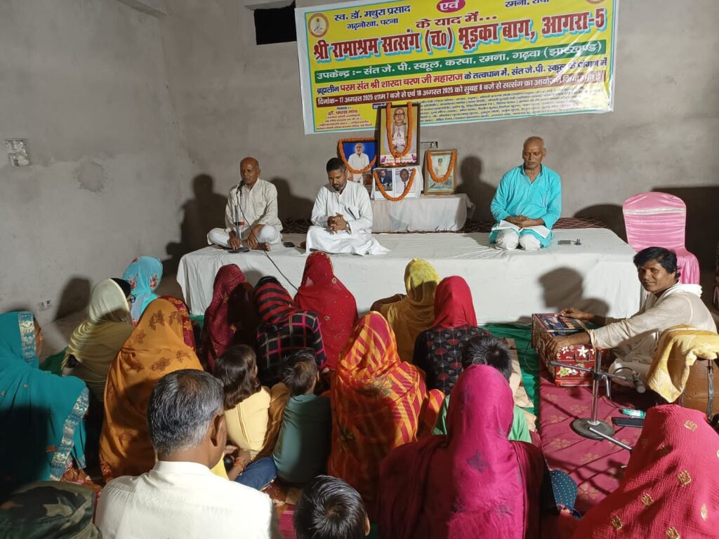 रमना । प्रखंड मुख्यालय स्थित संत जे.पी. स्कूल के प्रांगण में ब्रह्मलीन परम संत श्री शारदा चरण जी महाराज के तत्वावधान में दो दिवसीय श्री रामाश्रम सत्संग का आयोजन किया गया।इस अवसर पर आगरा से पधारे अनंत श्री वास्तव आचार्य ने अपने प्रवचन में कहा कि – “मनुष्य को अपने जीवन को सफल बनाने के लिए प्रतिदिन कम से कम आधे घंटे ईश्वर के प्रति समर्पित होकर मन की शांति में लगाना चाहिए।”