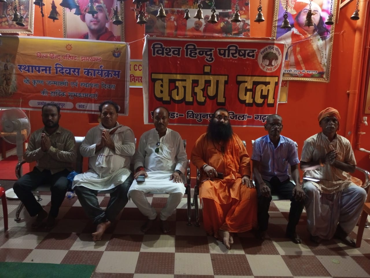 वही विश्व हिंदू परिषद के प्रखन्ड अध्यक्ष सुरेन्द्र कुमार यादव ने कहा कि पुरे देश में श्री कृष्ण जन्माष्टमी से लेकर 31 अगस्त तक प्रखन्ड के सभी पंचायतो में स्थापना दिवस मनाया गया l इस मौके पर जिला धर्माचार्य राधे श्याम पांडे, प्रखन्ड अध्यक्ष सुरेंद्र कुमार यादव, रविन्द्र मिश्रा, मंदिर पुजारी डब्बलु पांडे, नवल किशोर गुप्ता ,नन्द लाल राम, रामजन्म साह, राम रेश चन्द्रबन्शी, सहित अनेको राम भक्त मौजूद थे l
