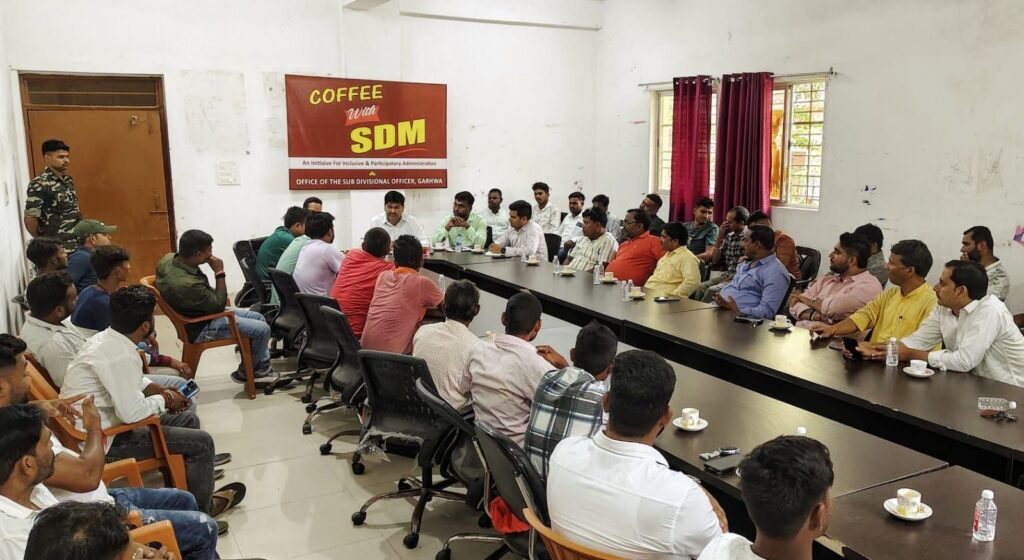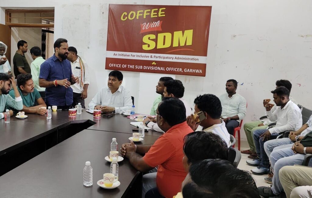 गढ़वा : अनुमंडल पदाधिकारी संजय कुमार के साप्ताहिक संवाद कार्यक्रम “कॉफी विद एसडीएम” में बुधवार को लगभग दो दर्जन पूजा समितियों के 50 से अधिक सदस्यों की सहभागिता रही। संवाद में दुर्गा पूजा पर्व की तैयारियों को लेकर पूजा समितियों ने अपनी-अपनी समस्याएं और सुझाव विस्तार से रखे। जिन पर एसडीएम ने आवश्यक कार्रवाई का भरोसा दिया।