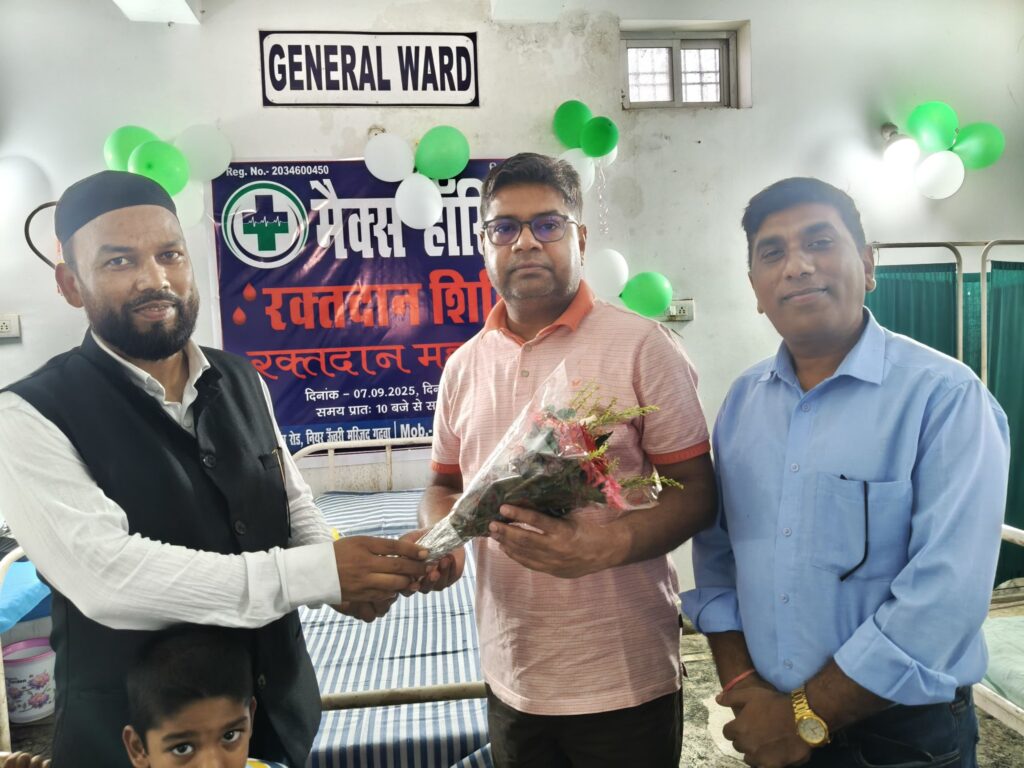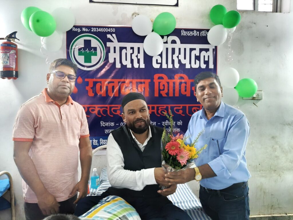 शिविर का उद्घाटन मुख्य अतिथि डॉ. अरशद अंसारी व विशिष्ट अतिथि डॉ मनोज कुमार ने किया। मौके पर मुख्य अतिथि डॉ अरशद अंसारी ने अपने संबोधन में कहा कि रक्तदान करना सबसे बड़ा मानवीय दायित्व है। रक्तदान से किसी की जान बचाई जा सकती है, इसलिए यह दान सबसे श्रेष्ठ दान माना जाता है। उन्होंने कहा कि रक्तदान करने से न केवल दूसरों को जीवनदान मिलता है बल्कि रक्तदाता स्वयं भी स्वस्थ रहते हैं। नियमित रक्तदान से शरीर में नया रक्त बनने की प्रक्रिया तेज होती है, जिससे व्यक्ति ऊर्जावान महसूस करता है। डॉ अरशद अंसारी ने कहा कि रक्तदान करने से न केवल जरूरतमंद मरीजों की जान बचती है, बल्कि रक्तदाता स्वयं भी कई बीमारियों से सुरक्षित रहता है। नियमित रक्तदान से शरीर में आयरन की अधिकता नियंत्रित रहती है, जिससे हृदय रोग, लीवर की समस्या और स्ट्रोक जैसी गंभीर बीमारियों का खतरा कम होता है। साथ ही रक्त बनने की प्रक्रिया सक्रिय रहती है, जिससे शरीर स्वस्थ और तंदरुस्त बना रहता है। उन्होंने कहा कि अक्सर देखा जाता है कि दुर्घटना, प्रसव या गंभीर बीमारियों के दौरान मरीजों को तुरंत रक्त की आवश्यकता होती है। ऐसे समय में यदि रक्त उपलब्ध न हो तो मरीज की जान बचाना मुश्किल हो जाता है। इसी को ध्यान में रखते हुए समाज के हर स्वस्थ व्यक्ति को समय-समय पर रक्तदान करना चाहिए। उन्होंने लोगों से अपील की कि वे इस नेक कार्य में आगे आएं और दूसरों को भी इसके लिए प्रेरित करें। रक्तदान शिविर में विभिन्न आयु वर्ग के लोग शामिल हुए। शिविर के दौरान सबसे पहला रक्तदान मैक्स हॉस्पिटल के डायरेक्टर डॉ महबूब आलम ने किया। मौके पर डॉ महबूब आलम ने कहा कि 18 से 60 वर्ष तक का कोई भी स्वस्थ व्यक्ति रक्तदान कर सकता है। रक्तदान के बाद थोड़ी देर आराम करना और पौष्टिक आहार लेना जरूरी होता है। मौके पर स्वास्थ्य विभाग के द्वारा रक्तदान करने वालों को टोपी और रिंग प्रदान कर सम्मानित किया गया। इस अवसर पर डॉ अरशद अंसारी, डॉ मनोज कुमार, अशफाक अंसारी, डॉ महबूब आलम, डॉ इमराना खातून, स्वास्थ्य विभाग के प्रदीप कुमार पासवान, रूपदेव सिंह सहित कई उपस्थित थे।