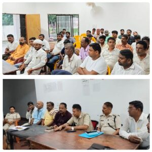 गढ़वा जिले के कांडी  थाना परिसर में सोमवार को दुर्गा पूजा महोत्सव को लेकर शांति समिति की बैठक की गई। बैठक की अध्यक्षता कांडी अंचलाधिकारी राकेश सहाय ने की। बैठक में अंचलाधिकारी राकेश सहाय ने लोगों को संबोधित करते हुए उपस्थित दोनों समुदाय के लोगों से कहा की प्रत्येक वर्ष की भांति इस वर्ष भी दुर्गा पूजा महोत्सव का कार्यक्रम शांति पूर्ण तरीके से मनाने का निर्देश दिया। उन्होंने कहा की प्राचीन काल से कांडी क्षेत्र में सौहार्द पूर्ण तरीके से सभी पर्व त्योहारों को मनाया जाता रहा है। अंचलाधिकारी राकेश सहाय व थाना प्रभारी अशफाक आलम ने कहा की माननीय न्यायालय के आदेशानुसार डीजे साउंड पर पूर्ण प्रतिबंध रहेगा।  पदाधिकारियों द्वय ने कहा की मां दुर्गा की प्रतिमा विसर्जन स्थल पर गोता खोरों का भी व्यवस्था