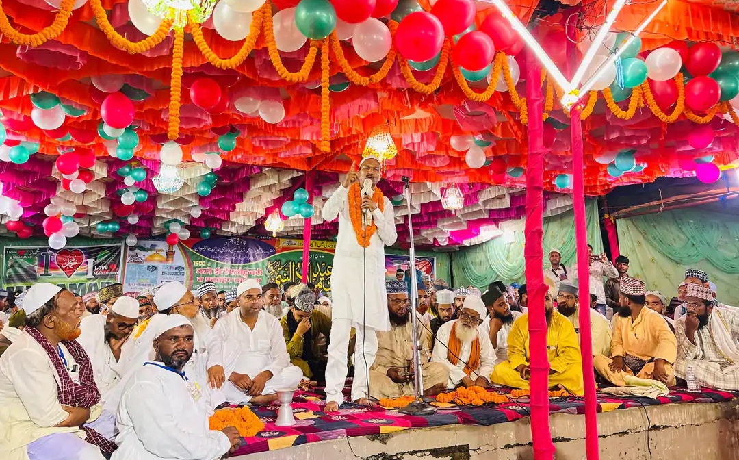श्री बंशीधर नगर:- जुमला नौजवाने अशरफी कमेटी के तत्वावधान में दारुल उलूम समसिया कादरिया कोइन्दी परिसर में 1500वें जश्ने ईद मिलादुन्नबी और मौलाना असरफ हुसैन मिसबाही के फातिहा-ए-चहल्लुम के मौके पर एक भव्य जलसे का आयोजन किया गया। इस कार्यक्रम में क्षेत्र के सैकड़ों लोगों ने भाग लेकर धार्मिक श्रद्धा और सामाजिक एकता का संदेश दिया। कार्यक्रम में बतौर मुख्य अतिथि झामुमो के केंद्रीय समिति के सदस्य ताहीर अंसारी, प्रसिद्ध समाजसेवी डॉ. यासीन अंसारी और हजरत हुजूर पीरे मुरशिद अमिनुल होदा, पीरे मुरशिद तनमीरुल होदा विशेष रूप से उपस्थित रहे। झामुमो नेता ताहीर अंसारी ने कहा कि ऐसे धार्मिक आयोजनों से समाज में शांति, एकता और भाईचारे का माहौल बनता है। उन्होंने युवाओं से अपील की कि वे शिक्षा और समाजसेवा को अपने जीवन का उद्देश्य बनाएं। डॉ. यासीन अंसारी ने कहा कि इस आयोजन से समाज में एक सकारात्मक संदेश जाता है और यह सभी वर्गों को जोड़ने का कार्य करता है। वहीं, झारखंडी बाबा ने अपने वक्तव्य में इस्लाम के बताए गए रास्ते पर चलने की आवश्यकता पर बल दिया। इस अवसर पर युवा समाजसेवी महमूद आलम सीनियर, मुखिया फिरदौश आलम, मुश्ताक अंसारी, असगर अंसारी, हाफ़िज़ व कारी गुलाम सादिक, अहमद अंसारी, जफरुदिन अंसारी, चंगेज अंसारी, फिरदौस आलम और समसूदिन अंसारी, सहरे अंसारी सहित बड़ी संख्या में स्थानीय लोग उपस्थित रहे। जलसे का संचालन मौलाना एजाज अंजुम ने किया।