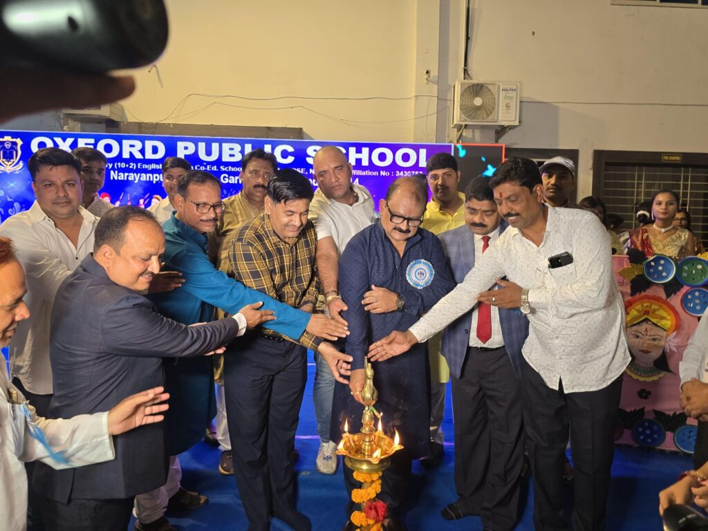 नवरात्रि के पावन अवसर पर ऑक्सफोर्ड पब्लिक स्कूल, गढ़वा में ग्रांड डांडिया गरबा नाईट का भव्य आयोजन किया गया। डांडिया-गरबा महोत्सव ने पूरे विद्यालय प्रांगण को उत्साह और उल्लास से भर दिया। कार्यक्रम में मुख्य अतिथि पूर्व मंत्री श्री मिथलेश ठाकुर, उप मंडल अधिकारी संजय कुमार क़ो विद्यालय परिवार की ओर से मार्च पास्ट ग्रुप के द्वारा भव्य स्वागत किया गया। मुख्य अतिथि विद्यालय के निदेशक श्री अनूप सोनी, सचिव श्री आलोक सोनी, प्रबंधन समिति सदस्य आकाश कुमार, सोनू कुमार तथा धीरज कुमार के कर कमलों से दीप प्रज्ज्वलन के साथ शुभारंभ हुआ। स्वागत गीत व गणेश वंदना से कार्यक्रम शुरू किया गया। दीपों की रौशनी और भक्ति संगीत की मधुर धुनों ने पूरे वातावरण को दिव्य और श्रद्धामय बना दिया।