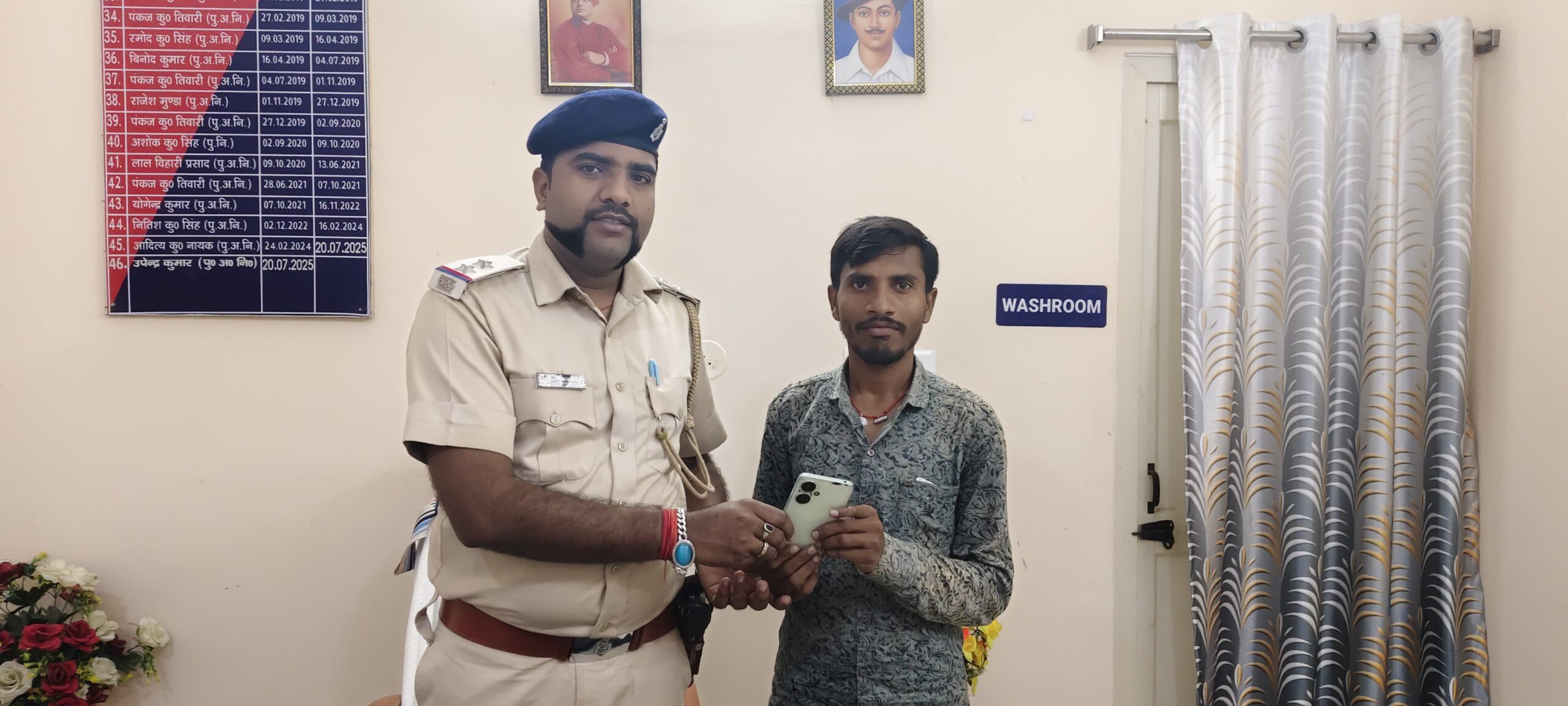 भवनाथपुर (श्री बंशीधर नगर):- थाना प्रभारी उपेंद्र कुमार की पहल पर नगर उंटारी थाना क्षेत्र के निवासी ओम प्रकाश पाल का गुम हुआ मोबाइल बरामद कर उन्हें सौंप दिया गया। जानकारी के अनुसार, ओम प्रकाश पाल, पिता राजेंद्र पाल, ग्राम पिपरी कला, थाना विशुनपुरा के निवासी हैं। करीब एक वर्ष पूर्व उनका मोबाइल नगर उंटारी बस स्टैंड के आसपास कहीं गुम हो गया था। उन्होंने कई दिनों तक खोजबीन की, लेकिन मोबाइल का कोई सुराग नहीं मिला। इसके बाद उन्होंने नगर उंटारी थाना में इसकी सूचना दी थी।