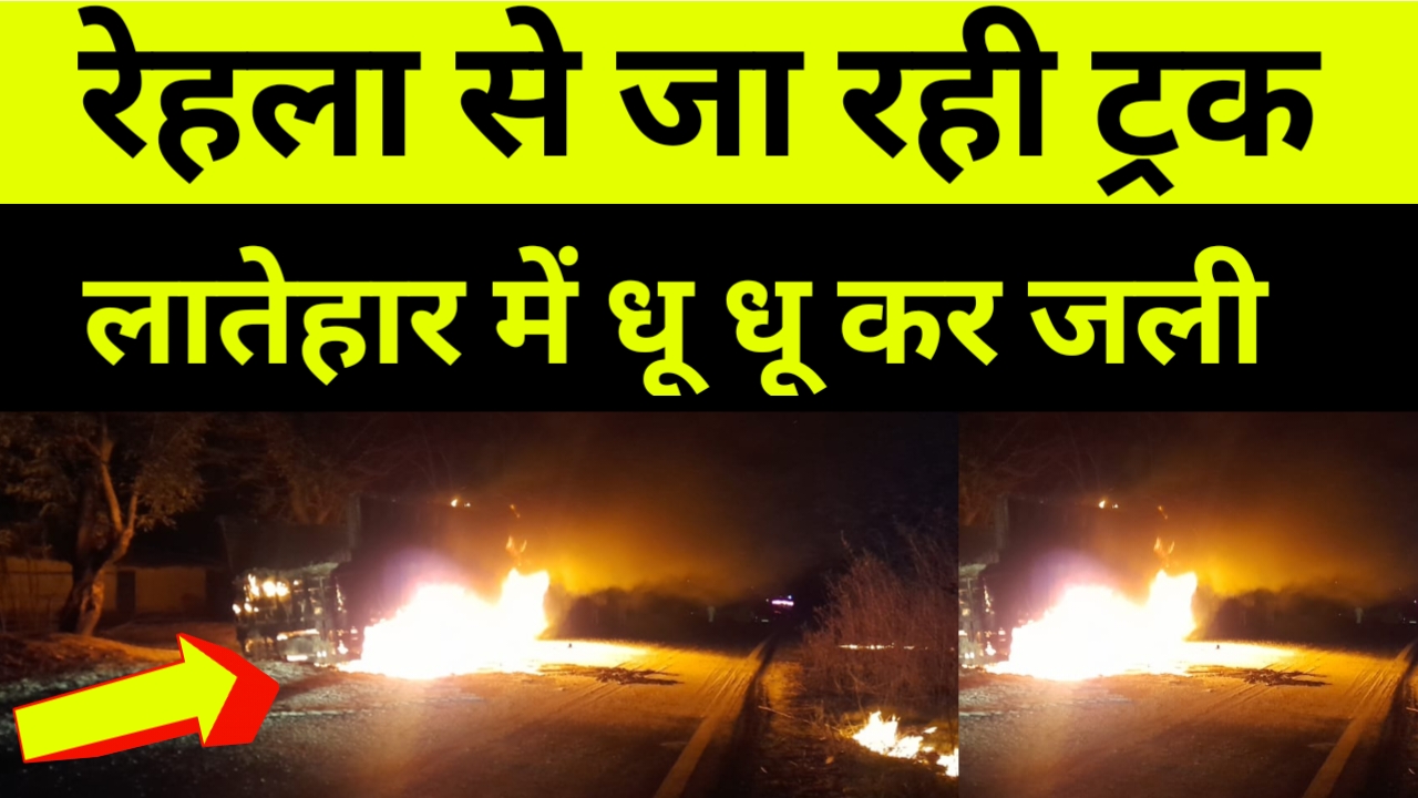 लातेहार में चलती ट्रक में लगी आग