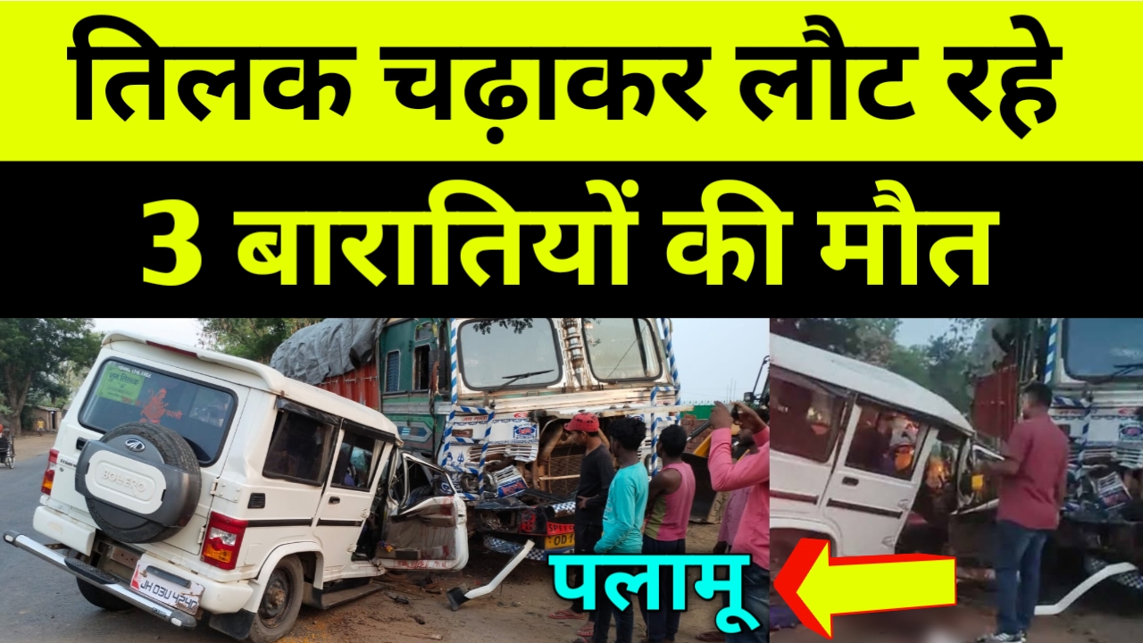 पलामू में तिलक चढ़ाकर लौट रहे 3 बारातियों की मौत, गाड़ी चलाते समय नींद आने की संभावना, सड़क से क़रीब आठ फीट दूर खड़े ट्रक में मार दी टक्कर