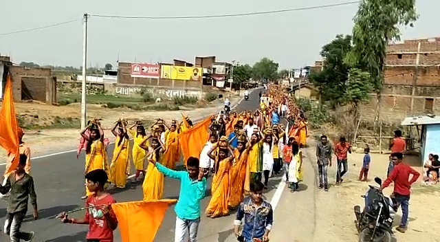 बंशीधर नगर: अखिल विश्व गायत्री परिवार द्वारा आयोजित तीन दिवसीय 12 कुंडीय गायत्री महायज्ञ को लेकर रविवार को कलश यात्रा निकाला गया.कलश यात्रा नरखोरिया खुर्द शिव मंदिर परिसर से होकर आश्रम होते हुए बंशीधर मंदिर पहुंच कर वापस नारखोरिया खुर्द आ गया.कलश यात्रा में बंशीधर नगर प्रखंड के अलावे भवनाथपुर, रमुना, केतार, खरौंधी सहित आसपास के गांव के 251 महिलाओं ने कलश यात्रा में भाग लिया.उक्त मौके पर शांतिकुंज हरिद्वार से महायज्ञ कराने आए टोली नायक परमेश्वर साहू जी,गायक गौरी प्रसाद साहू जी, तबला वादक चंद्रभान मौर्य जी तथा सारथी के रूप में सुनील सिंह मौजूद रहे. वही कलश यात्रा को सफल बनाने में मुख्य रूप से समाजसेवी सह जेएमएम नेता सूर्यदेव मेहता, रामनरेश प्रसाद, रमाशंकर सोनी, बबलू प्रसाद, दयानंद विश्वकर्मा,राजा कुमार,अमित कुमार मेहता भवनाथपुर से बजरंगी साव, उपेंद्र गुप्ता, धर्म चंद्र लाल अग्रवाल, राम प्रसाद, सुदर्शन प्रसाद, अनिल लाल अग्रवाल, ललसु, अखोरी ज्योति प्रसाद, शिव शंकर प्रसाद,शिवकुमार, अमित कुमार, विद्याभूषण, नवीन कुमार, गिरवर,बैजनाथ सहित दर्जनों परिजनों ने कलश शोभायात्रा में महत्वपूर्ण भूमिका निभाया और संपन्न कराया।