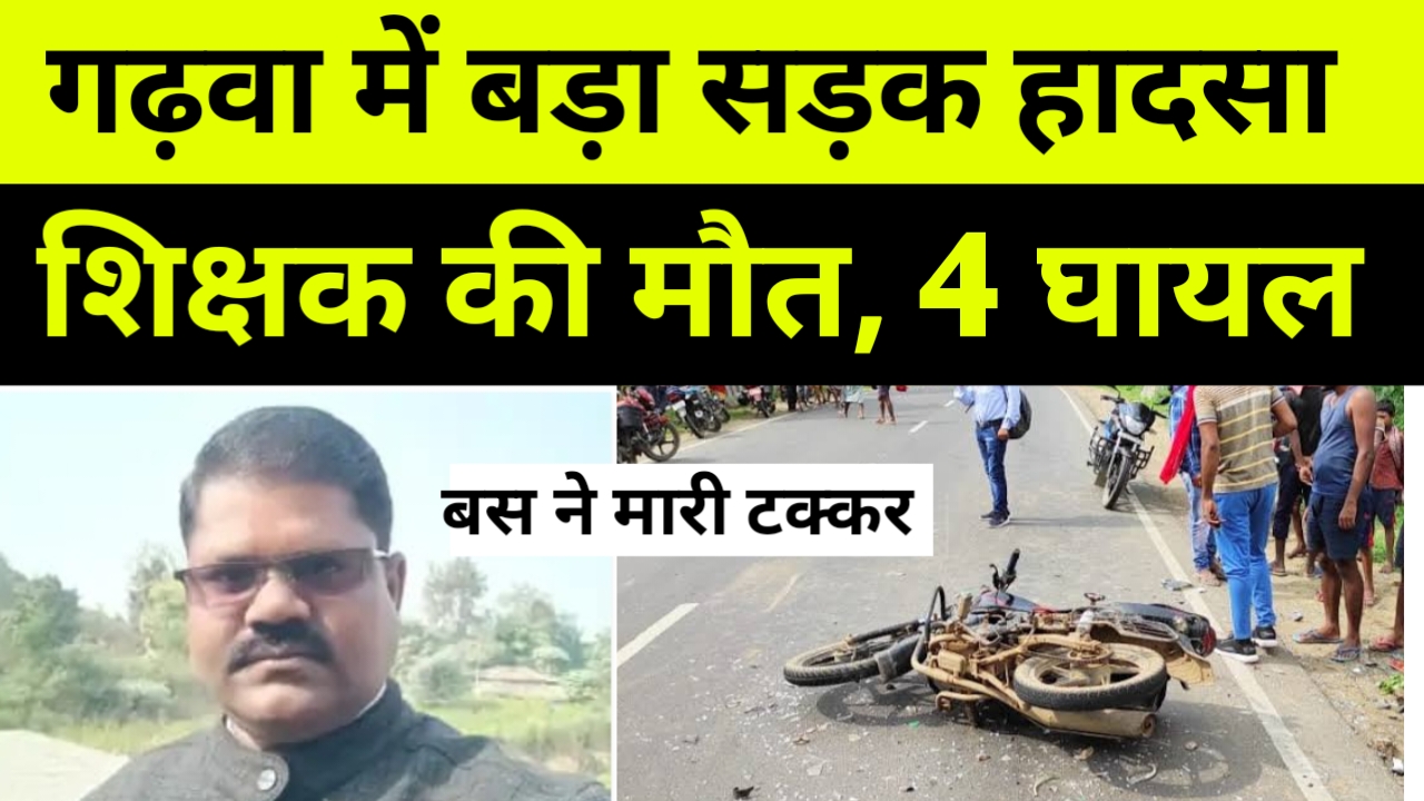 गढ़वा में भीषण सड़क हादसा, रांची से मझिआंव आ रही बस ने मारी दो बाईक को टक्कर, धक्के से शिक्षक की मौत, 4 घायल,