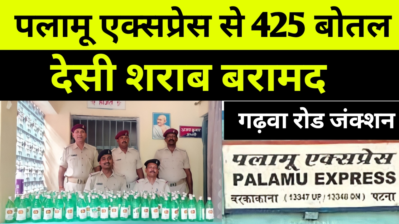 बरकाकाना से पटना जाने वाली पलामू एक्सप्रेस ट्रेन संख्या 13347 से गढ़वा रोड जंक्शन पर 425 बोतल देशी शराब बरामद की गई है।