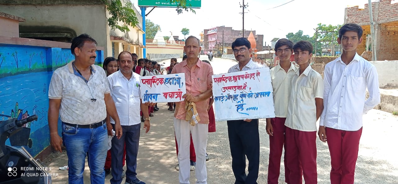 बंशीधर नगर (गढ़वा):- राजकीय मध्य विद्यालय श्री बंशीधर नगर की ओर से शुक्रवार को गढ़वा जिला शिक्षा पदाधिकारी के निर्देश पर विशेष नामांकन अभियान व गत 1 जुलाई से प्रतिबंधित सिंगल यूज प्लास्टिक मुक्त अभियान की सफलता को लेकर पोषक क्षेत्र में जागरूकता रैली निकाली गई। इसकी जानकारी देते हुए प्रधानाध्यापक अनिल कुमार विश्वकर्मा ने बताया कि जागरूकता रैली विद्यालय प्रांगण से चलकर चेचरिया राष्ट्रीय राजमार्ग 75 से बस स्टैंड, सब्जी बाजार, दक्षिण मोहल्ला, बंशीधर मोहल्ला, श्री बंशीधर मंदिर व सूर्य मंदिर होते हुए विद्यालय प्रांगण आकर समाप्त हुआ। इस दौरान रैली में शामिल शिक्षक व बच्चे अभिभावकों से अपने-अपने बच्चों का नामांकन विद्यालय में कराने तथा प्रतिबंधित सिंगल यूज प्लास्टिक मुक्त भारत बनाने में सहयोग करने के लिए आग्रह किया। शिक्षक व बच्चों ने सिंगल यूज प्लास्टिक को छोड़ कपड़े व जूट के बने थैले का प्रयोग करने का आग्रह सभी लोगों से किया। इस दौरान विद्यालय परिवार की ओर से बच्चों के द्वारा बनाए गए करीब एक सौ से अधिक कपड़े का थैला लोगों के बीच वितरण किया गया। रैली में शामिल बच्चे प्लास्टिक हटाओ जीवन बचाओ, प्लास्टिक प्रदूषण को जड़ से उखाड़ना है कपड़े और जूट के बैग को अपनाना है, सिंगल यूज प्लास्टिक को दूर करें स्वास्थ्य के खतरे को कम करें, प्लास्टिक है पर्यावरण व जीवन का दुश्मन आदि नारे लगा रहे थे। रैली में प्रधानाध्यापक अनिल कुमार विश्वकर्मा, शिक्षक रामलला मिश्र, खुशदिल कुमार सिंह, आफताब आलम, शिक्षिका सुधा कुमारी, माया कुमारी, अनिता कुमारी, मीरा कुमारी, विद्यालय प्रबंधन समिति के अध्यक्ष अरविंद कुमार सहित विद्यालय के बच्चे शामिल थे।
