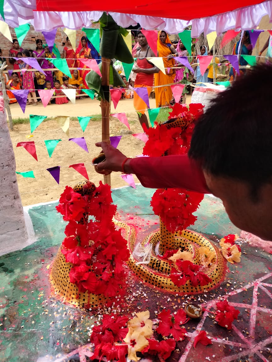 खरौंधी प्रखंड के पंचायत कुपा मे नाग बाबा का छोटे सा स्थान है जहां सैकड़ों श्रद्धालुओं ने पूजा-अर्चना विधी कर नाग बाबा से सुख समृद्धि के लिए बाबा से मंगत मांगा । आगे आपको बताते चलें कि नागों की रक्षा के लिए यज्ञ को ऋषि अस्तित्व मुनि ने श्रावण मास की शुक्ल पक्ष की पंचमी के दिन रोक दिया और नानू की रक्षा की। इस कारण तक्षक नाग के बचने से नागों का वंश बच गया। आग के ताप से बचने के लिए ऋषि ने उन पर काचा दूध डाल दिया था। तभी से नाग पंचमी मनाई जाने लगी। इस मौके पर हरिहर राम बिनेष राम जगरनाथ प्रजापति रघुनंदन प्रजापति अनिल सिंह अनिल यादव उमेश यादव रमेश प्रजापति सुदामा साह कन्हाई प्रजापति रामप्रवेश यादव धर्मेंद्र सिंह संजय प्रजापति आदि उपस्थित थे।