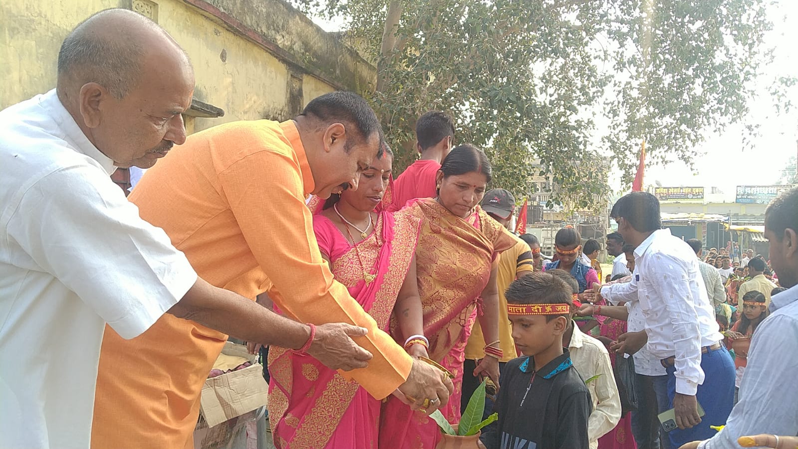 विश्रामपुर पलामू ज़िला ब्यूरो चीफ लवकुश कुमार की रिपोर्ट ***डॉक्टर ईश्वर सागर चंद्रवंशी ने पंचमुखी मंदिर के पास अभी कलश यात्रा में शामिल माताएं बहने एवं बच्चों के कलश में फल एवं जल वितरण करते हुए उसके बाद शिव घाट आकर सभी कलश यात्रियों को शुभकामनाएं देते हुए जल भरकर विदा किया इस मौके पर विधायक जिला प्रतिनिधि रामचंद्र यादव विधायक नगर प्रतिनिधि राजन पांडे वार्ड पार्षद सुनील चौधरी विजय रविदास पत्रकार दीर्घा से महेंद्र प्रजापति कौशल चंद्रवंशी इत्यादि बहू श्रद्धालु इस कलश यात्रा में थाना प्रभारी शशी रंजन कुमार उपस्थित थे