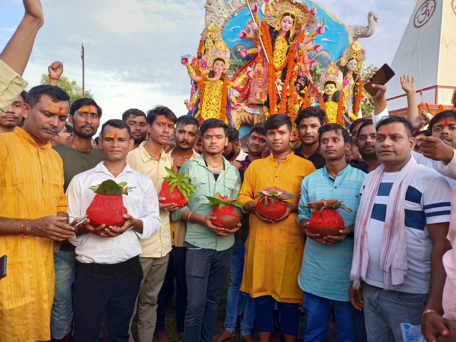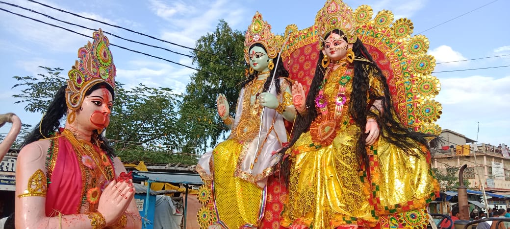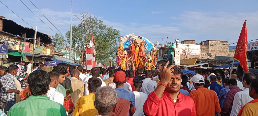 अनुमंडल ब्यूरो राहुल वर्मा की रिपोर्ट रमना- असत्य पर सत्य के विजय का प्रतिक पर्व विजयादशमी प्रखण्ड मुख्यालय सहित आस-पास के क्षेत्रों में हर्षोल्लास एवं भक्तिमय वातावरण में मनाया गया।इस अवसर पर श्रद्धालुओ ने नम आंखों से माँ दुर्गा को विदाई दी। बाजार स्थित जय भावनी संघ के पूजा पंडाल में स्थापित मां दुर्गा की प्रतिमा का विसर्जन में हजारों श्रद्धालुओं ने भाग लिया।पिछले 72 वर्षों से चली आ रही परम्परा के अनुसार श्रद्धालुओं ने माँ दुर्गा की प्रतिमा का विसर्जन अपने कंधे के सहारे तीन किलो मीटर दूर सुखड़ा नदी तट पर किया ।इस दौरान प्रतिमा को कंधा लगाने को लेकर श्रद्धालुओं में जबरदस्त उत्साह देखा गया। इसके अलावे श्री सीताराम मानस मंदिर में स्थापित श्री रामदरबार प्रतिमा का विसर्जन भी बुधवार को किया गया।वही नव युवक संघ बस स्टैंड एवं सूर्या क्लब भगत सिंह चौक के पास स्थापित प्रतिमा का विसर्जन गुरुवार को गाजे-बाजे के साथ किया गया।इसके पहले विजय दशमी के अवसर पर कई पूजा पंडालो में महाप्रसाद का वितरण भी किया गया।जिसमे बाजार स्थित जय भवानी संघ के प्रांगण में दशमी के दिन शिवा ट्रेडर्स के प्रोपराइटर मोती प्रसाद,एवं नवमी के दिन मुखिया दुलारी देवी तथा व्यवसायी किशोरी प्रसादसोनि के संयुक्त तत्वधान में भंडारा का आयोजन किया गया। जबकि नवयुवक संघ बस स्टैंड के प्रांगण में सहारा फ्रेंचाईजी प्रबंधक धनंजय प्रसाद गुप्ता ने महाप्रसाद का वितरण किया। इसके अलावे प्रखण्ड के मड़वनिया,कबिसा,भागोडीह, चुन्दी, गम्हरिया,बुलका,टंडवा, सिलीदाग आदि गांवों में भी दुर्गा पूजा धूम-धाम से मनाये जाने की सूचना है।