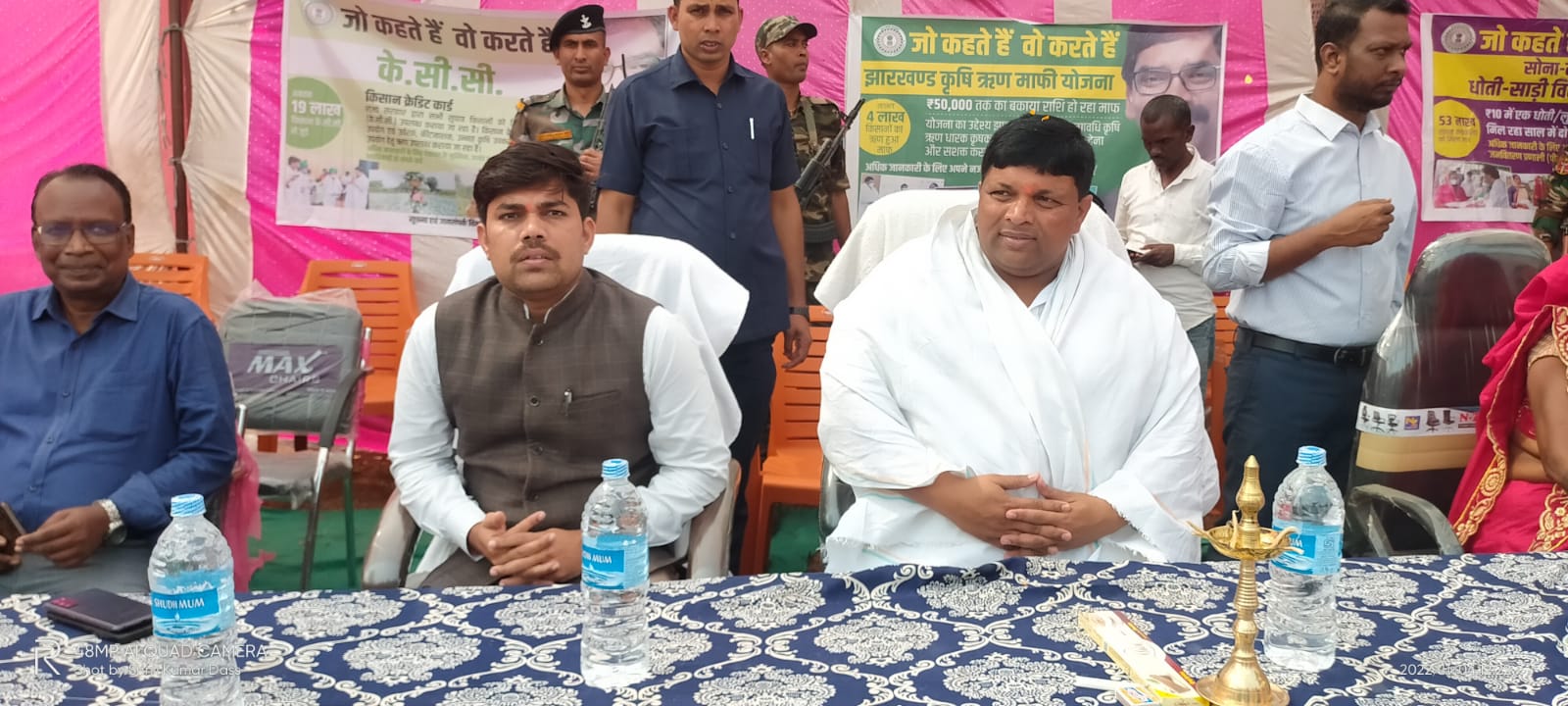 सर्वजन पेंशन योजना के तहत लखमिनिया देवी एवं सुधन राम को पेंशन योजना से आच्छादित किया गया। मौके पर ही पंचायत के मुखिया कौशल्या देवी द्वारा पंचायत सचिवालय की कुल 2 लाख रुपए की लागत से बाउंड्री एवं तोरण द्वार के निर्माण हेतु शिलान्यास किया गया। उपायुक्त श्री घोलप द्वारा शिविर में उपस्थित ग्रामीणों को संबोधित करते हुए सरकार द्वारा चलाए जा रहे विभिन्न जनकल्याणकारी योजनाओं के विषय में जानकारी दी गई तथा योग्य लोगों को योजना का लाभ लेने हेतु जागरूक किया गया। साथ ही शिविर में ग्रामीणों को अपने आवश्यकता अनुरूप योजनाओं का लाभ लेने हेतु शिविर में लगाए गए स्टॉल में जाकर जानकारी प्राप्त करते हुए सरकारी योजनाओं का लाभ लेने को कहा।