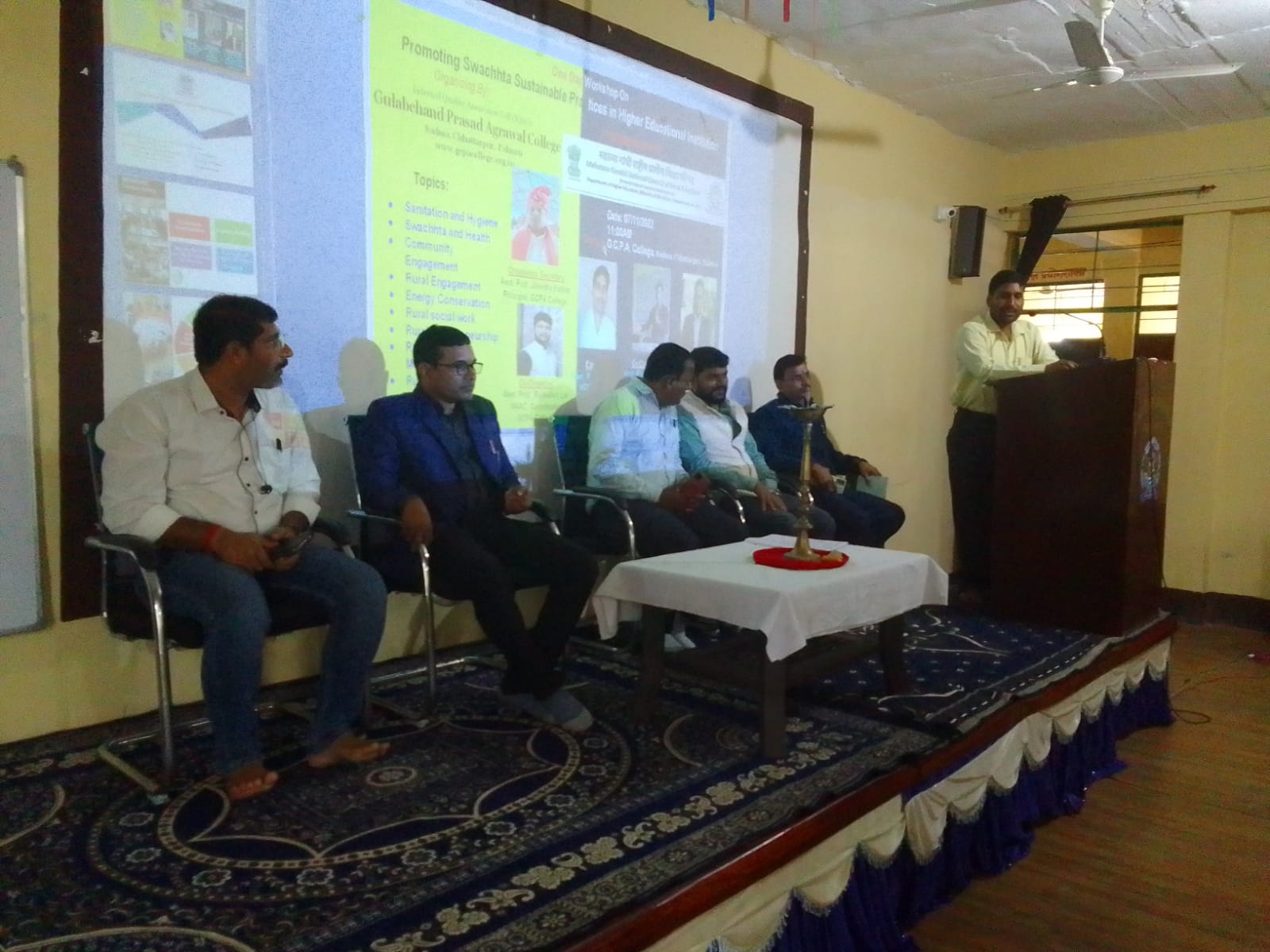 पलामू जिले के छतरपुर अनुमंडल स्थित गुलाबचंद प्रसाद अग्रवाल कॉलेज के सेमिनार हॉल में महात्मा गांधी राष्ट्रीय ग्रामीण शिक्षा परिषद् शिक्षा मंत्रालय भारत सरकार द्वारा स्वच्छता एवं सतत विकास विषय पर एक दिवसीय कार्यशाला का आयोजन समाजशास्त्र विभाग एवं आईक्यूएसी द्वारा किया गया। इस कार्यशाला का उद्घाटन पलामू जिला के प्रोजेक्ट एसोसिएट डॉ प्रवीण सिंह कुशवाहा, कॉलेज के प्रभारी प्राचार्य प्रोफेसर जितेंद्र कुमार, कार्यक्रम संयोजक प्रोफेसर राजमोहन, नैक समन्वयक प्रोफेसर राजकिशोर लाल, आईक्यूएसी समन्वयक प्रो अखिलेश कुमार सिंह एवं परीक्षा नियंत्रक प्रोफेसर अमित कुमार सिंह ने संयुक्त रूप से दीप प्रज्वलित कर किया। कार्यक्रम को संबोधित करते हुए प्रोजेक्ट एसोसिएट डॉ प्रवीण सिंह कुशवाहा ने कहा कि हमें शिक्षा के साथ-साथ स्वच्छता पर विशेष ध्यान देने की जरूरत है। हमें अपने घर, कॉलेज परिसर एवं आसपास के परिसर को स्वच्छता सहित संसाधनों के संरक्षण पर विशेष ध्यान देने की आवश्यकता है। कॉलेज के प्रोफेसर जितेंद्र कुमार ने कहा कि इस कार्यक्रम में महाविद्यालय शिक्षक, शिक्षकेतर, कर्मचारियों एवं छात्र- छात्राओं के अलग-अलग ग्रुप के माध्यम से संस्थान में ,समाज में जागरूकता सहित सकारात्मक प्रयास करनी है। मौके पर इस कार्यक्रम में उपस्थित प्रो. सूर्योदय कुमार, धर्मेंद्र कुमार सिंह, प्रो. इंदु कुमारी, प्रो. अशोक कुमार अग्रवाल, प्रो. अपराजिता प्रकाश, प्रो. सुनीता कुमारी, प्रो. रानी कुमारी, प्रो. बालमुकुंद पाठक, प्रो. योगेंद्र विश्वकर्मा, सहित सैकड़ों में छात्र-छात्राएं एवं शिक्षकेतर कर्मी उपस्थित थे।